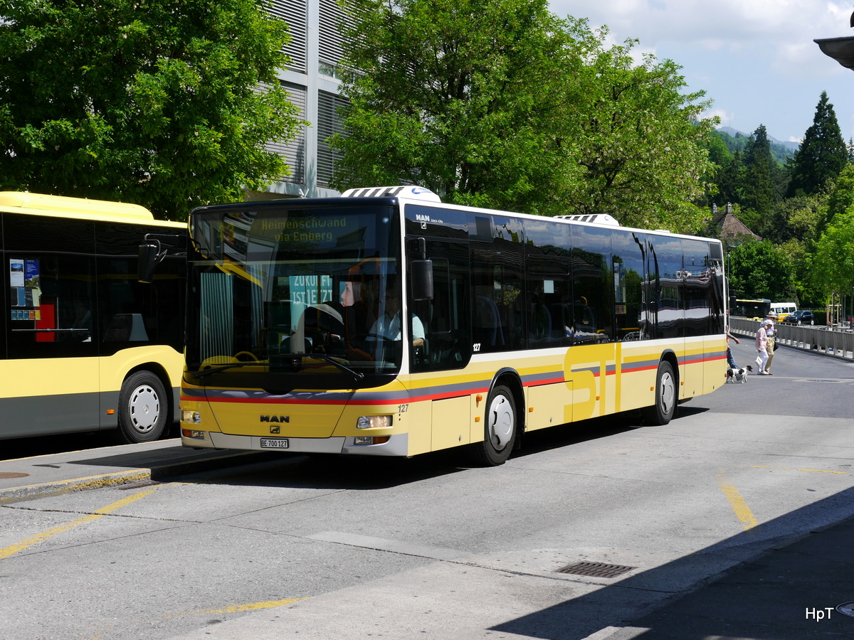 STI - MAN Lion`s City Nr.127 BE 700127 bei den Bushaltestellen gegenüber dem Bahnhof in Thun am 27.05.2017