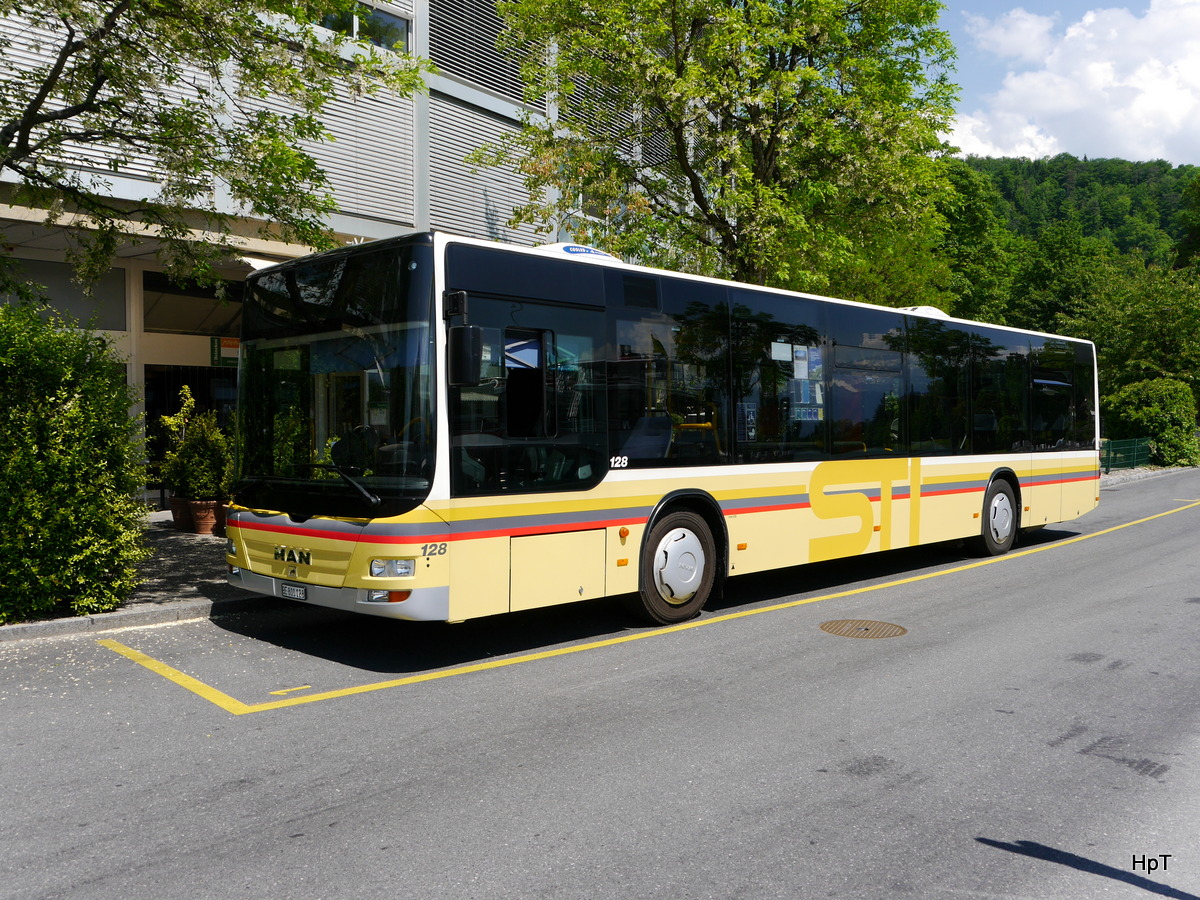 STI - MAN Lion`s City Nr.128 BE 800128 bei den Bushaltestellen vor dem Bahnhof in Thun am 27.05.2017