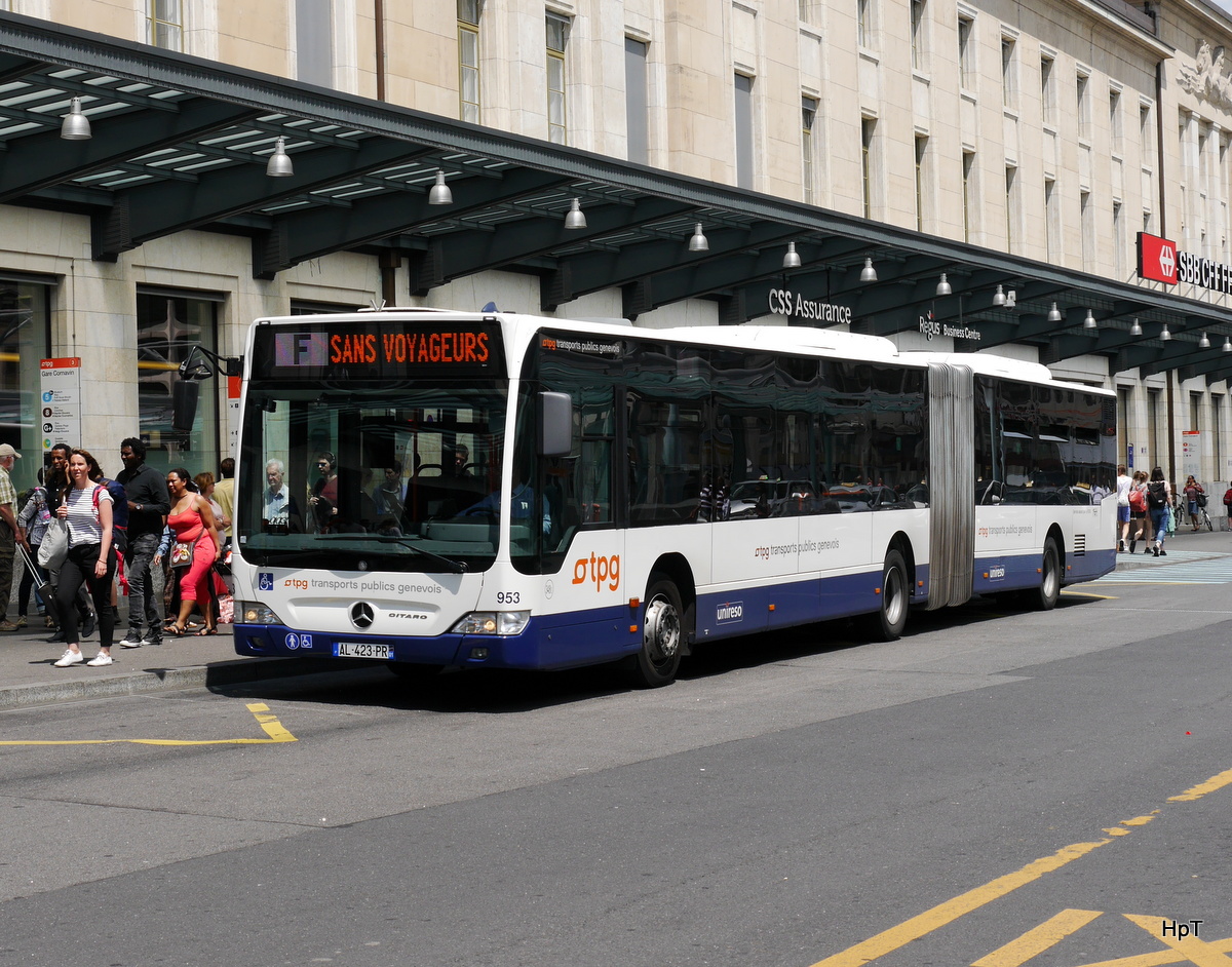 tpg - Mercedes Citaro Nr.953 AL-423-PR unterwegs auf der Linie F in der Stadt Genf am 03.06.2017