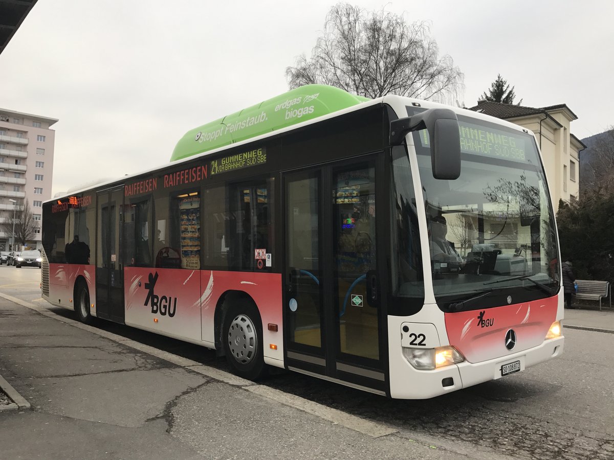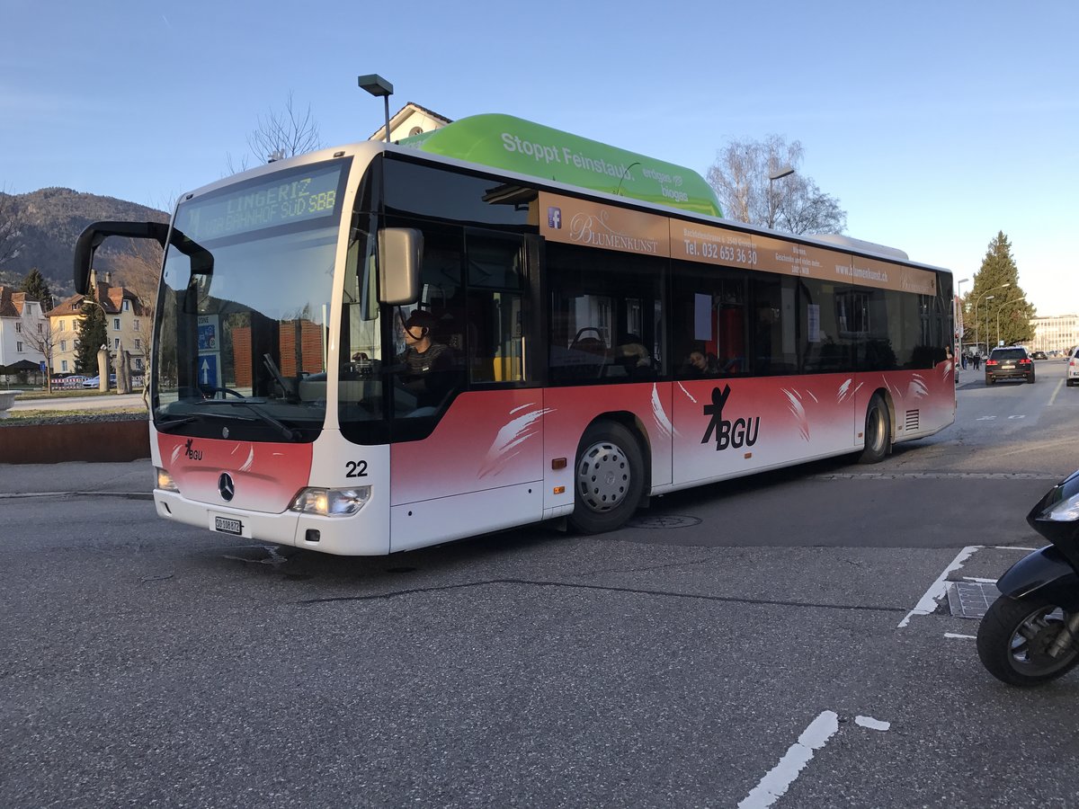 BGU Citaro Facelift Nr. 22 am 3.3.17 beim Bhf Grenchen Süd.