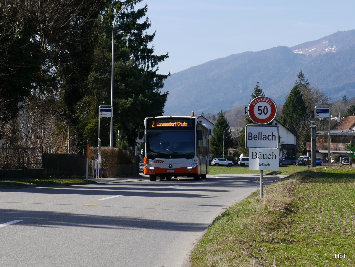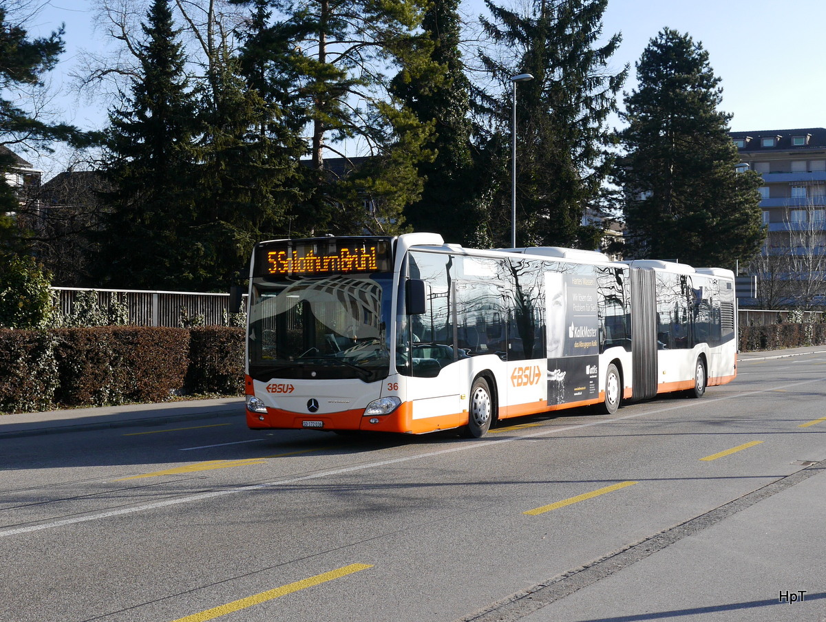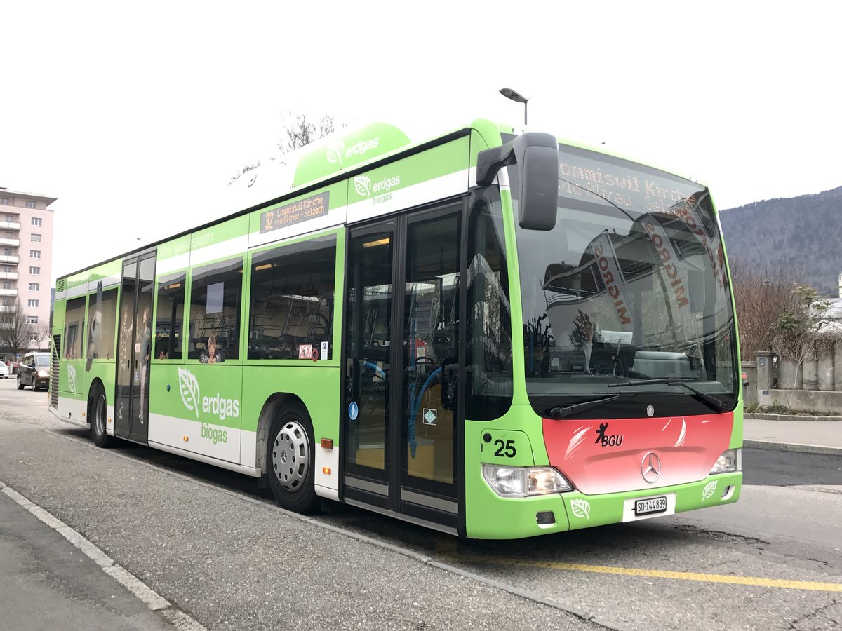 BGu Citaro Nr. 25 nach der Abfahrt vom Bhf Grenchen Süd am 10.3.17.