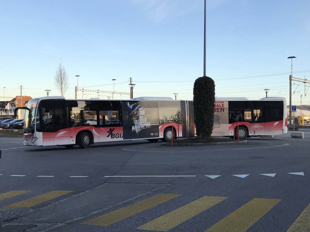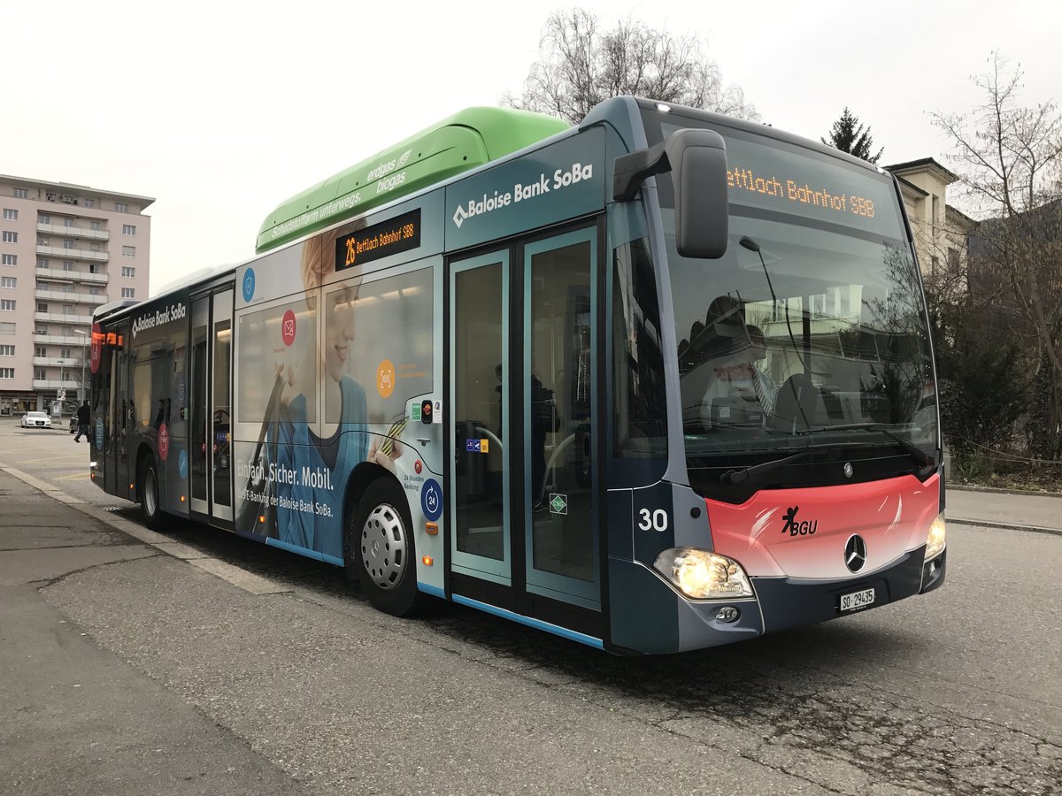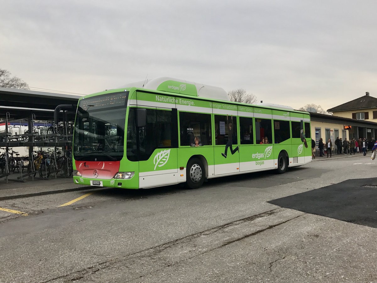 BGU Citaro Facelift Nr. 25 mit Erdgas Vollwerbung am 3.3.17 beim Bhf Grenchen Süd.
