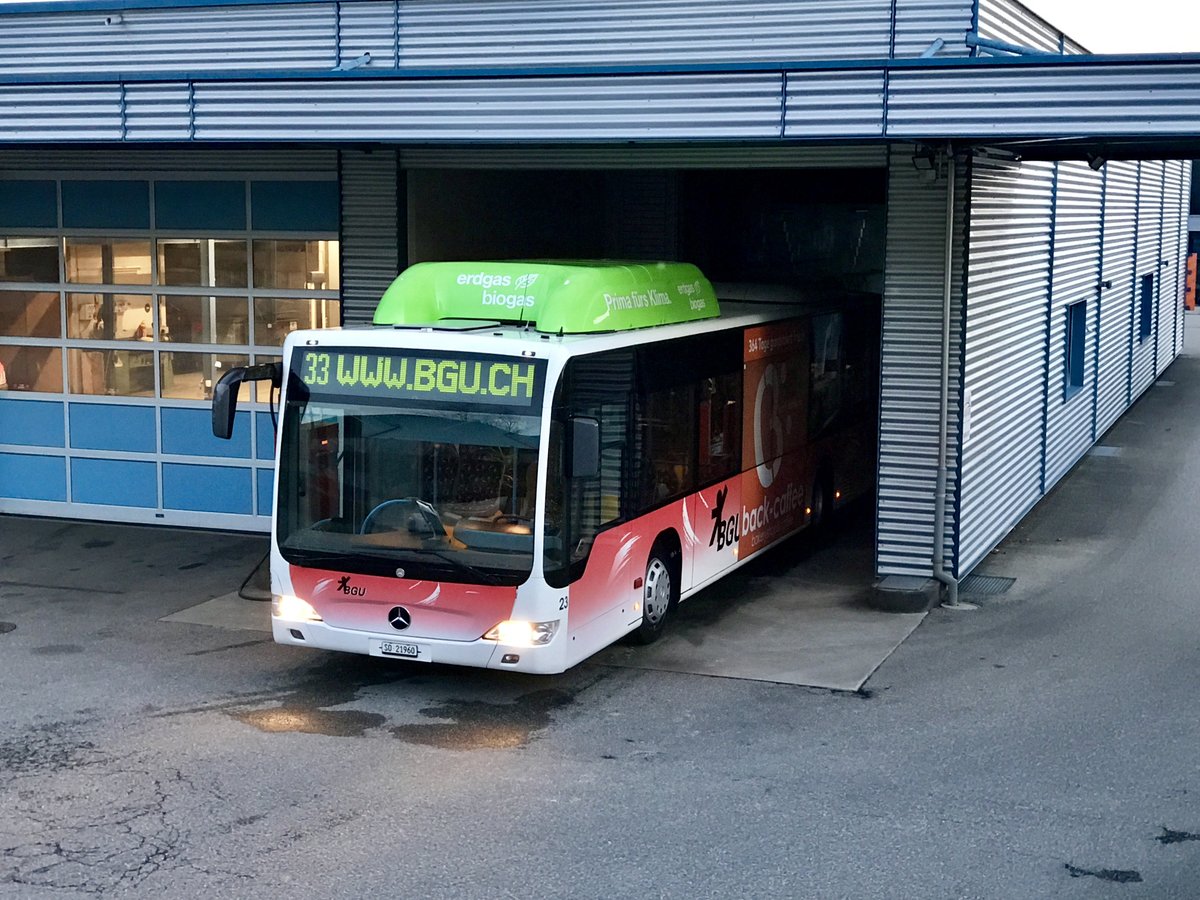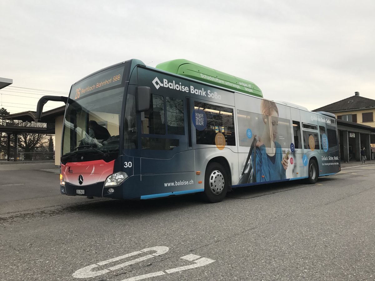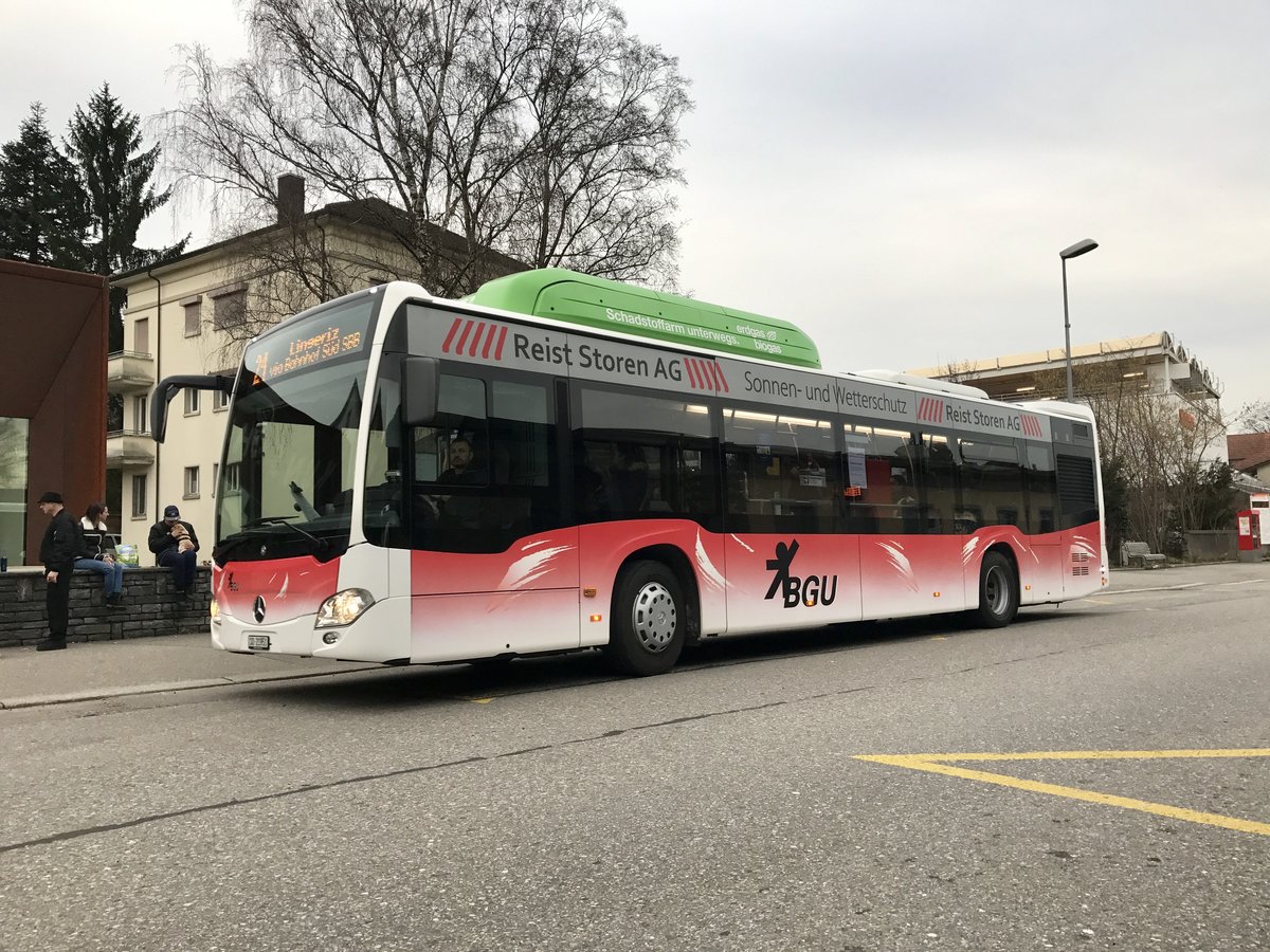 BGU Citaro Facelift Nr. 25 mit Erdgas Vollwerbung am 3.3.17 beim Bhf Grenchen Süd.