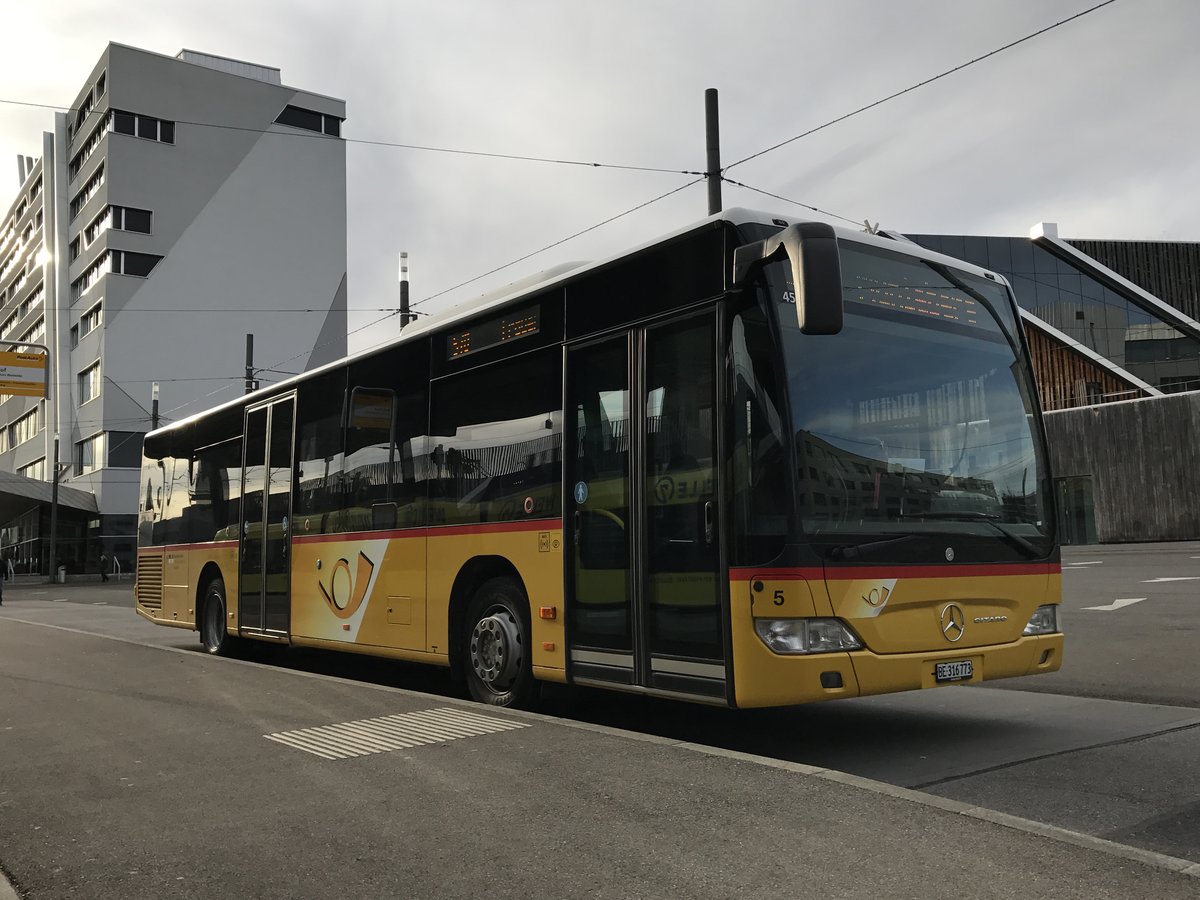 Citaro Facelift von PostAuto Richtung Mühleberg, am 2.3.17 bei Brünnen westside.