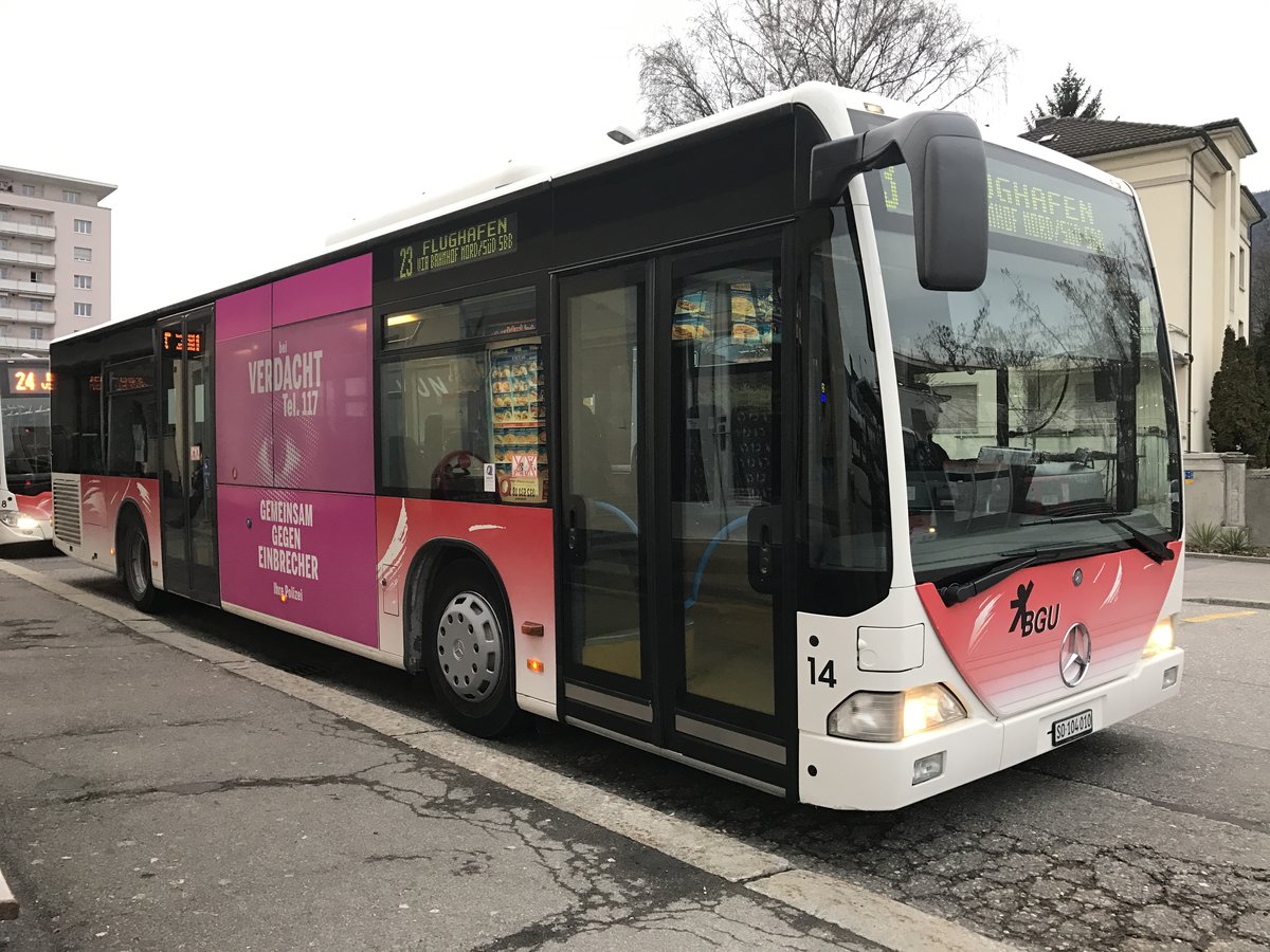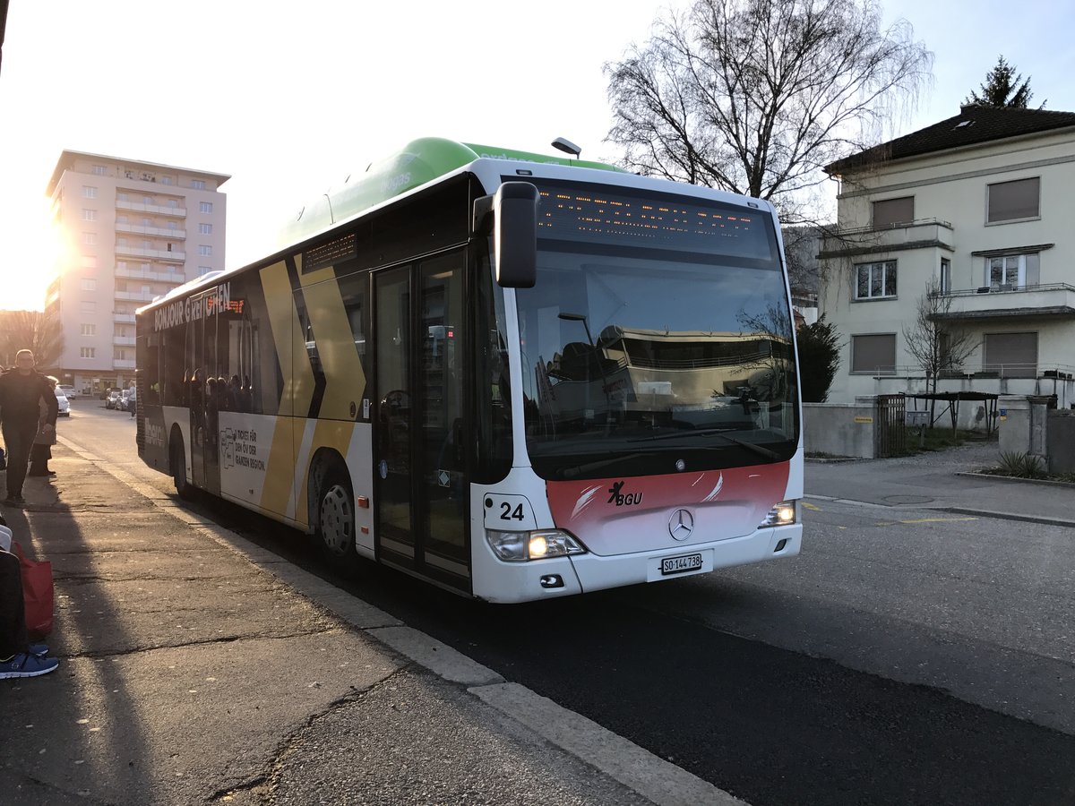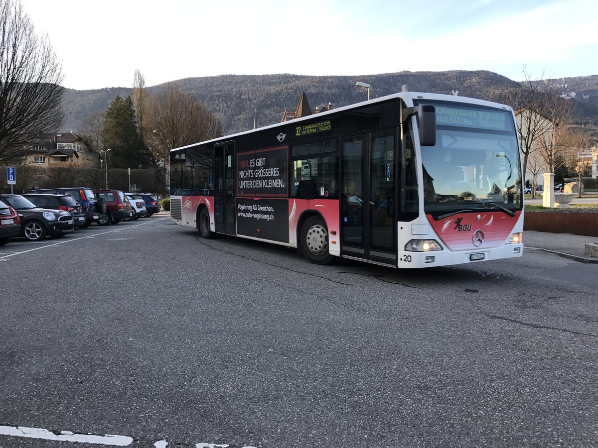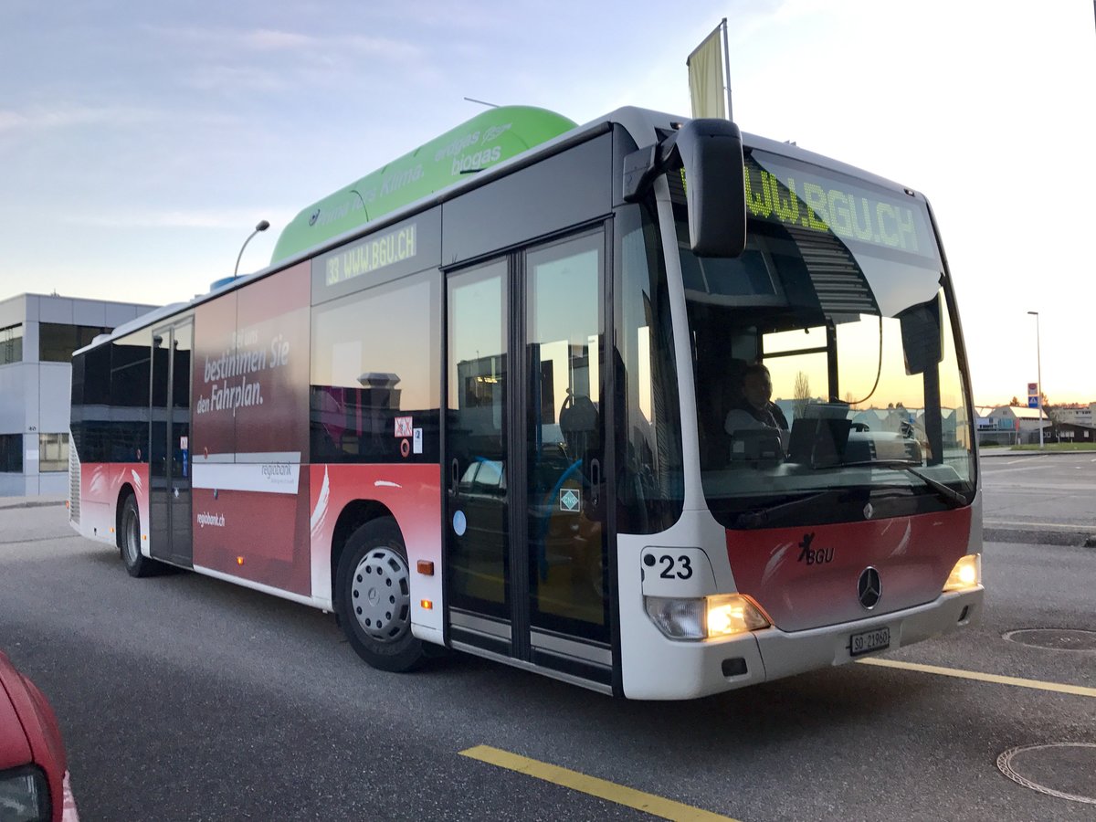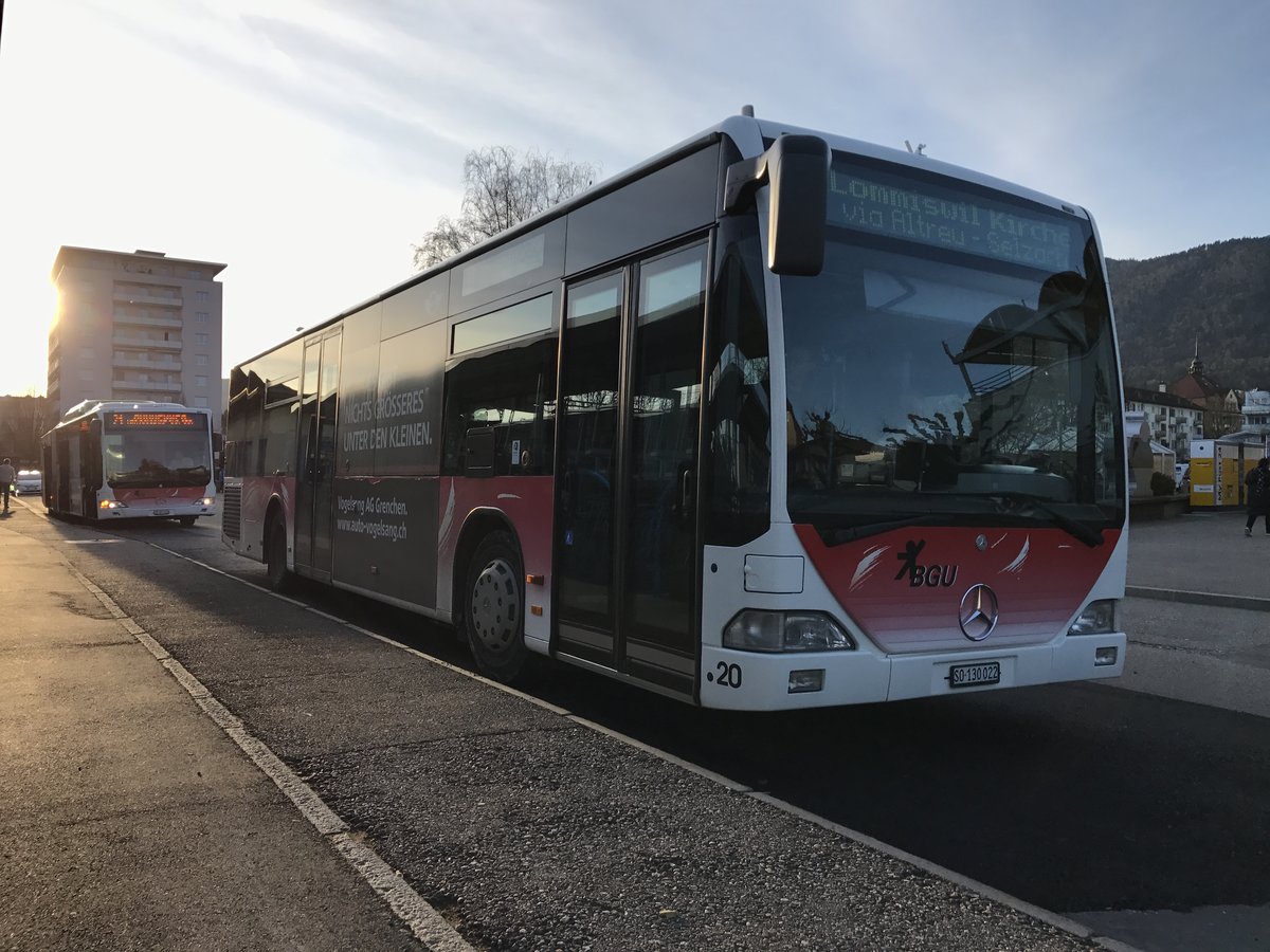 Citaro I Nr. 20, einer von zwei Citaro I und der letzte ohne Erdgasantrieb bei der BGU, am 3.3.17 in Grenchen Süd.