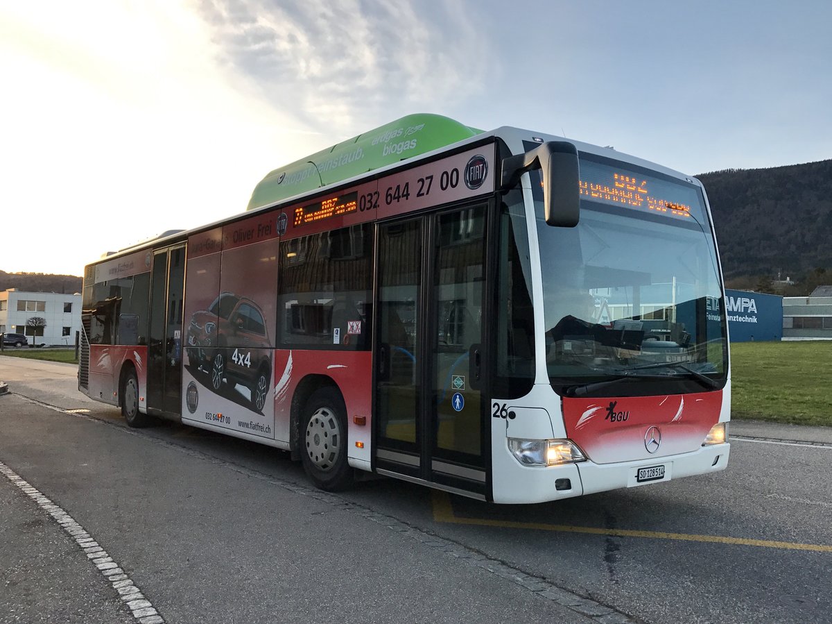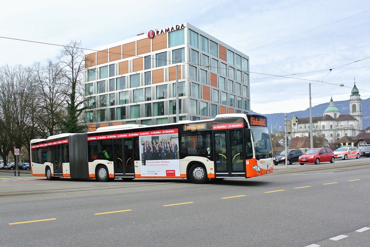 Citaro Nr. 26 auf der Linie 22 nach Grenchen BBZ, am 10.3.17 bei der Haltestelle Lebernstrasse.