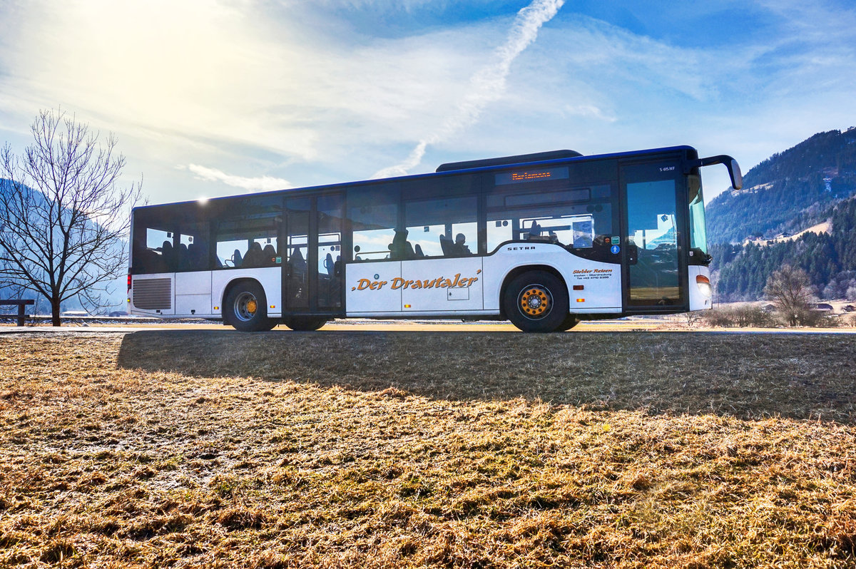 Omnibusunternehmen Heuser Mercedes Benz Citaro C2, zwei Setra Überlandbusse und ein Setra Reisebus am 03.03.17 in Langenselbold vom Gehweg aus fototgrafiert