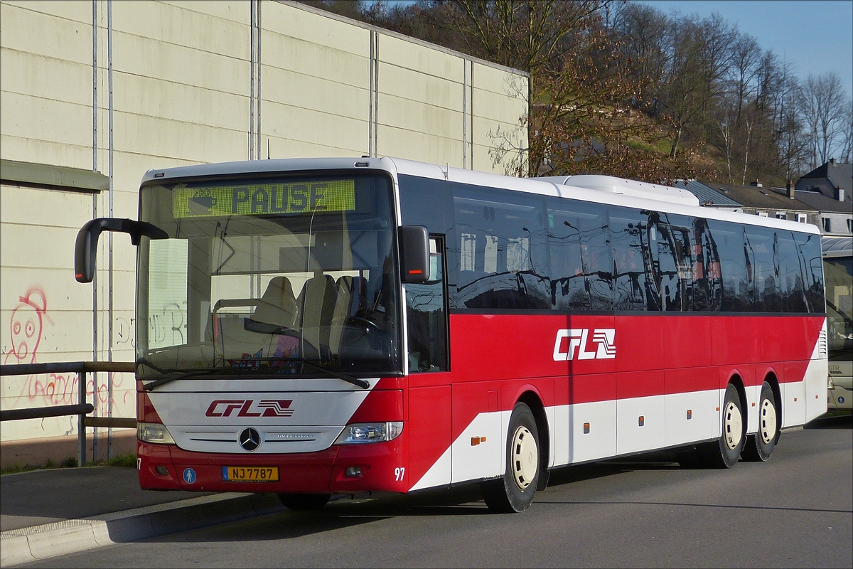 NJ 7787 Mercedes Benz Integro des CFL legt vor dem nächsten Einsatz eine kurze Pause in Ettelbrück ein. 11.03.2017