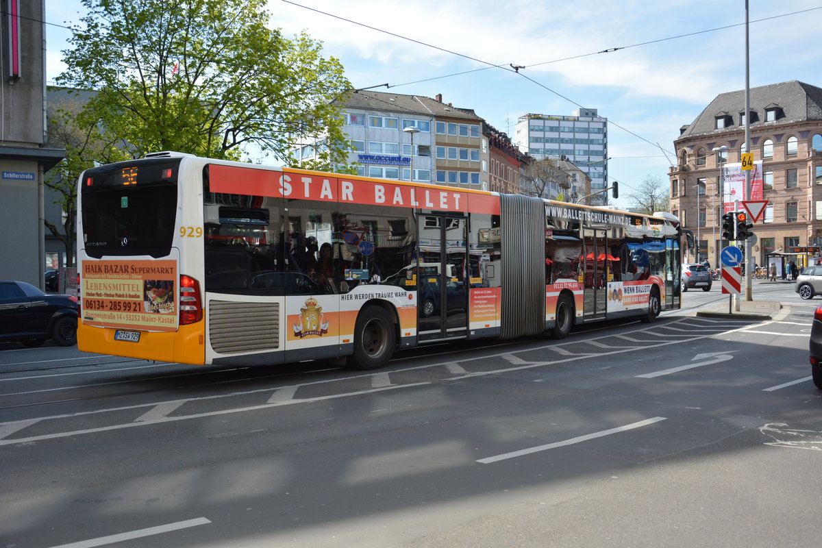Am 21.04.2016 fährt MZ-SW 929 auf der Linie 56. Aufgenommen wurde ein Mercedes Benz Citaro G II / Mainz Innenstadt.