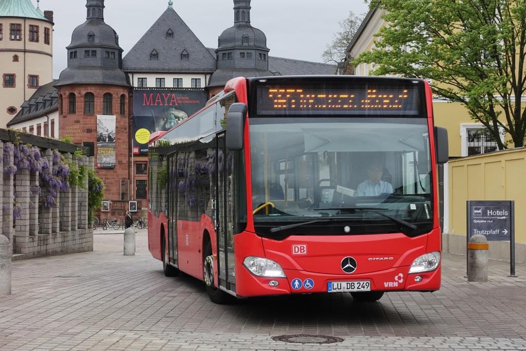 Unterwegs war der Bus von Mannheim, Wasserturm nach Lindenhof, Lindenhofplatz, als SEV für die Tram-Linie 3, da diese den Hauptbahnhof aufgrund einer Baustelle umfährt.
