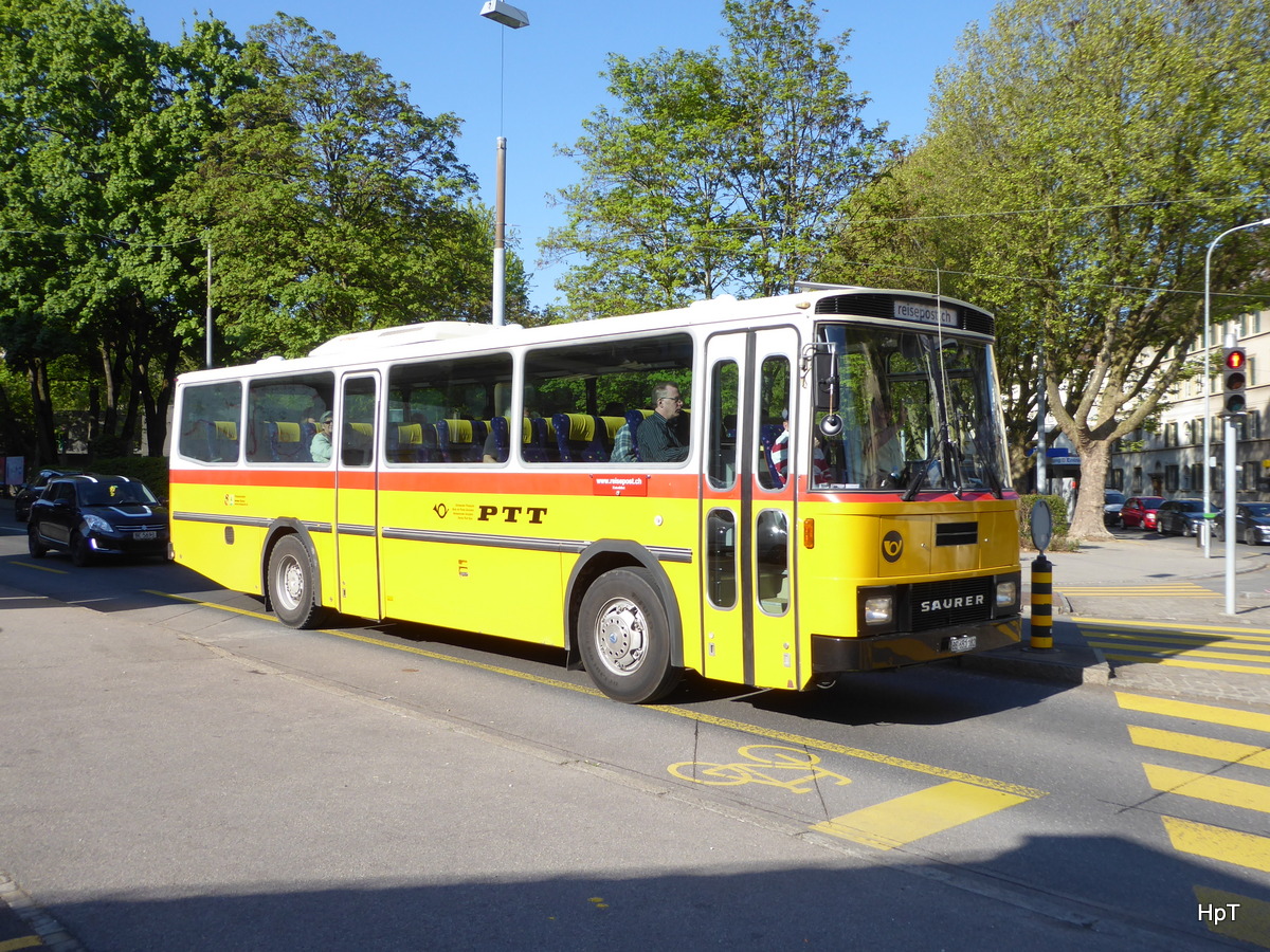Reisepost.ch - ex PTT / Saurer Oldtimer BE 651182 unterwegs in der Stadt Biel am 29.04.2017