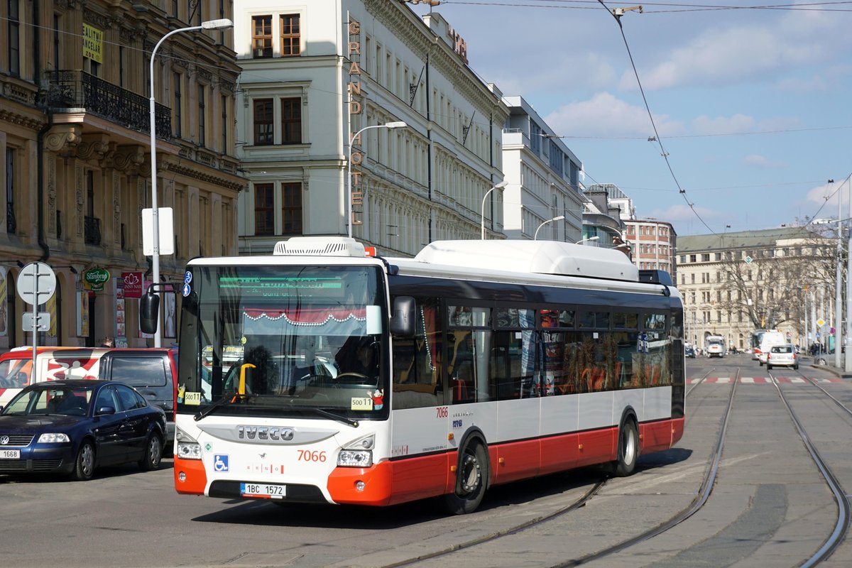 Tschechien / Stadtbus Brno / Brünn: Iveco Urbanway 12M - Wagen 7066 von Dopravní podnik města Brna a.s. (DPMB), aufgenommen im März 2017 am Hauptbahnhof der tschechischen Stadt Brünn.