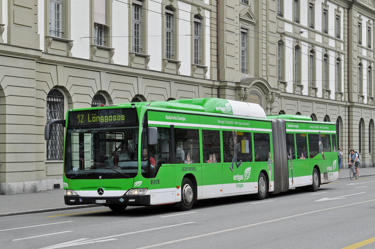 Mercedes Citaro 856, mit der Erdgas Werbung, auf der Linie 12, fährt Richtung Bubenbergplatz. Die Aufnahme stammt vom 09.06.2017.