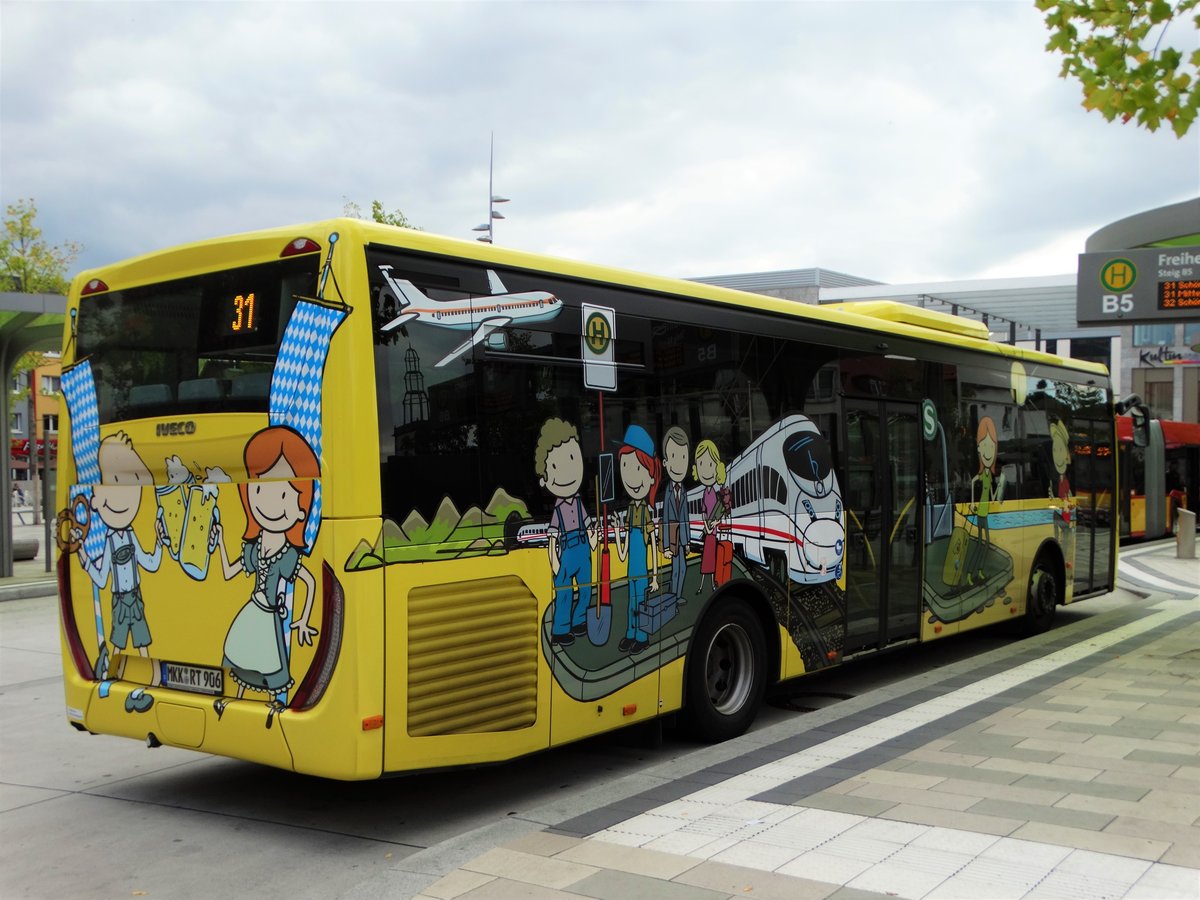 Bus Bad Kreuznach: Iveco Crossway LE der Verkehrsgesellschaft mbH Bad Kreuznach (VGK). Aufgenommen im August 2017 im Stadtgebiet von Bad Kreuznach.