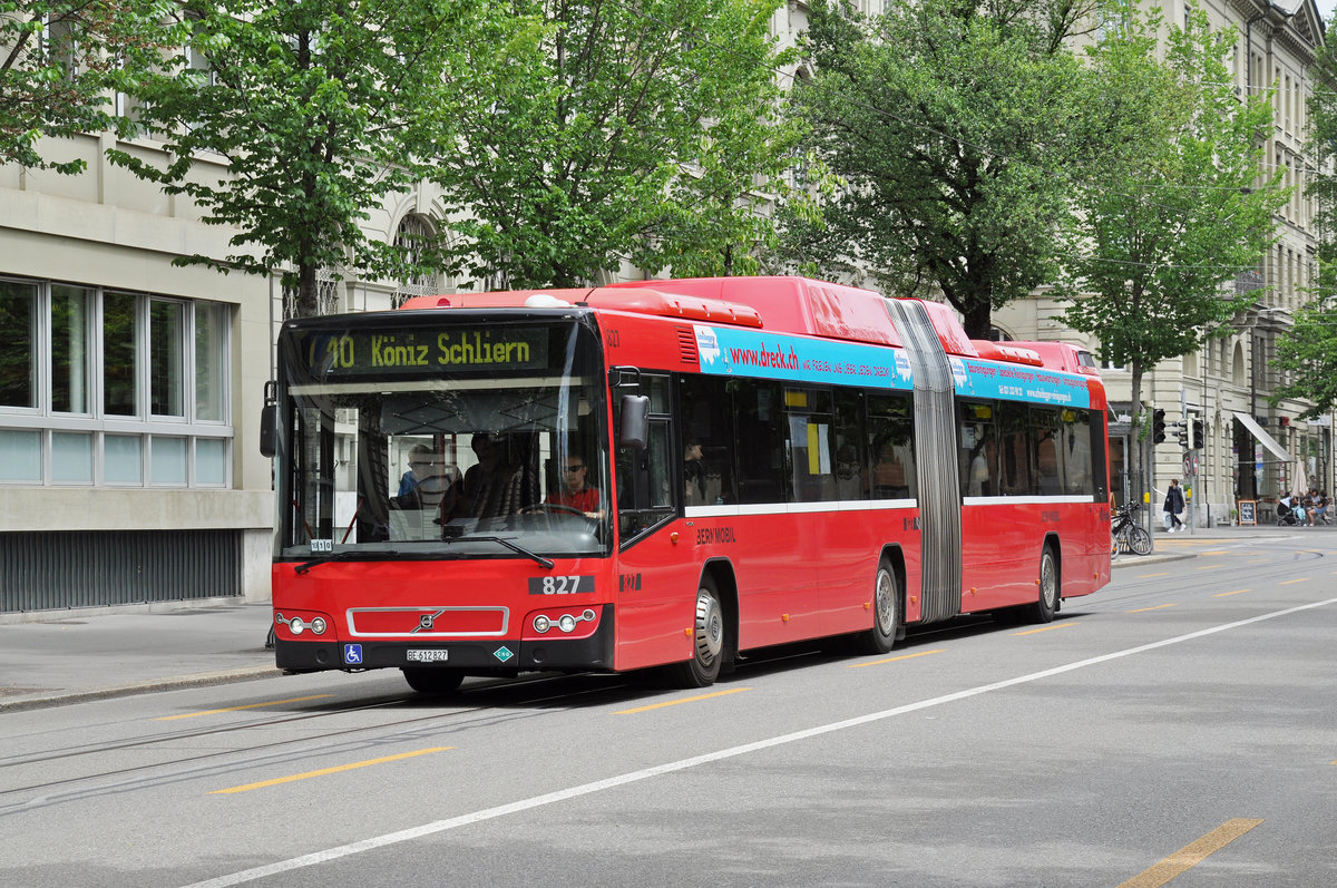 Volvo Bus 830, auf der Linie 10, fährt zur Haltestelle beim Bahnhof Bern. Die Aufnahme stammt vom 09.06.2017.