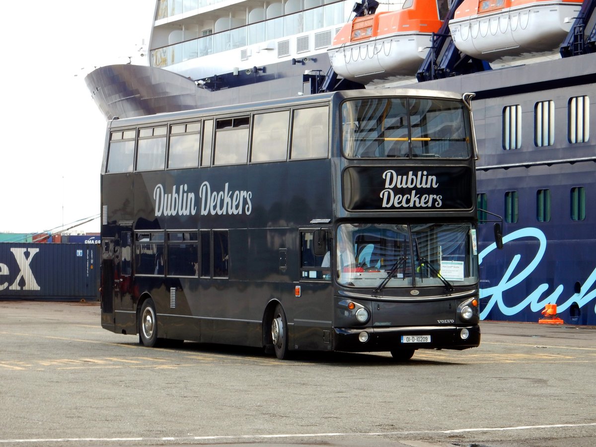 Zwei Volvo Doppeldecker Stadtbusse am 03.06.17 im Hafen von Dublin
