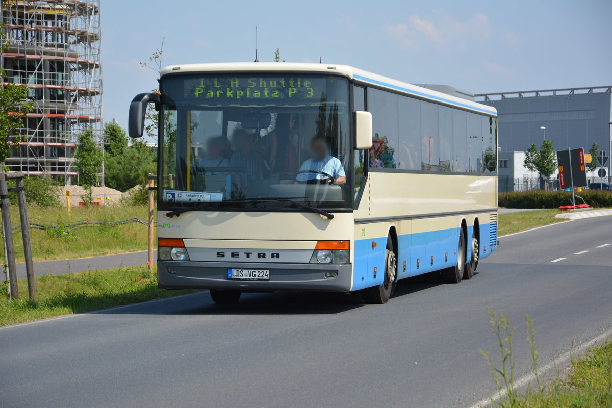 Am 04.06.2016 fährt LDS-VG 224 für die ILA 2016 Shuttle zwischen Parkplatz und ILA-Gelände. Aufgenommen wurde ein Setra S 319 UL der RVS.