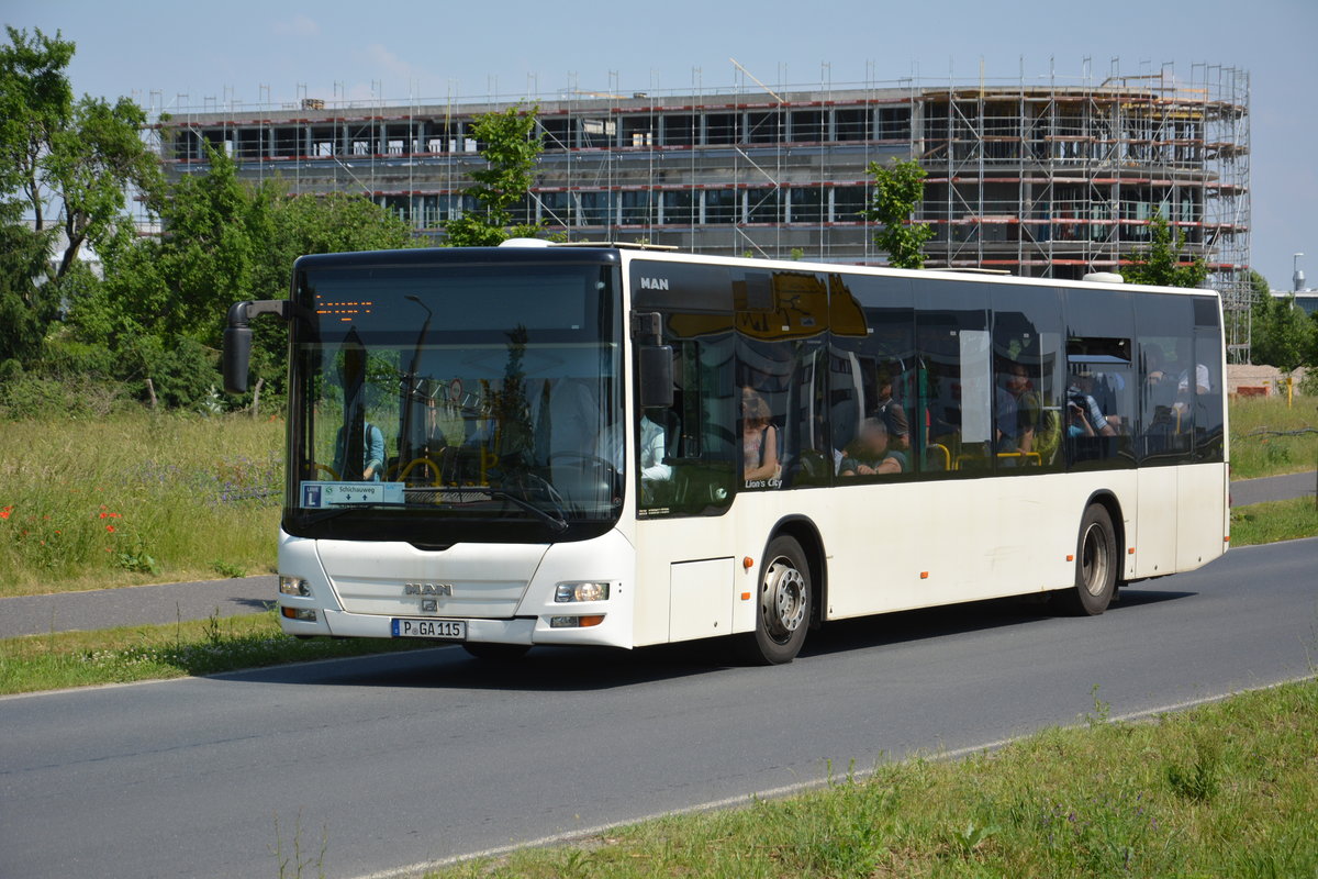 Am 04.06.2016 fährt P-GA 115 für die ILA 2016 Shuttle zwischen S-Bahnhof Schichauweg und ILA-Gelände. Aufgenommen wurde ein MAN Lion's City.