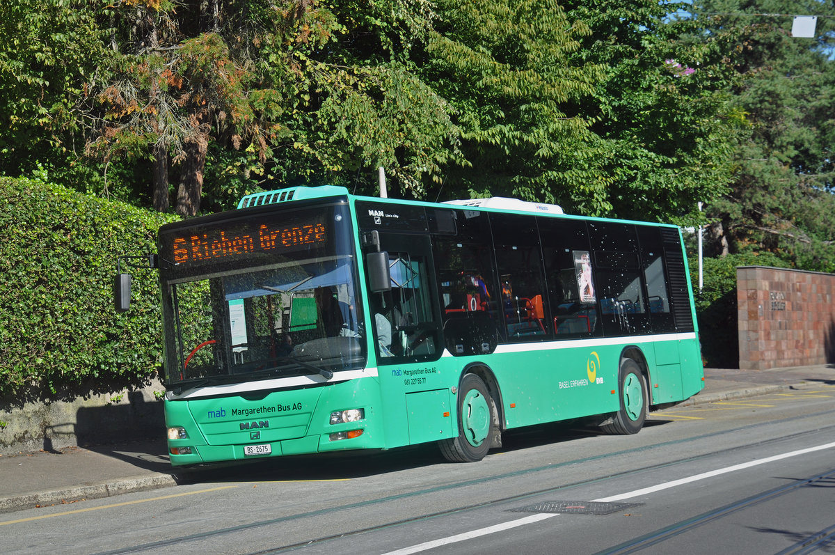 MAN Bus der Margarethen Bus AG (ex BVB 823), auf der Linie 38, bedient die Haltestelle am Claraplatz. Die Aufnahme stammt vom 17.09.2017.