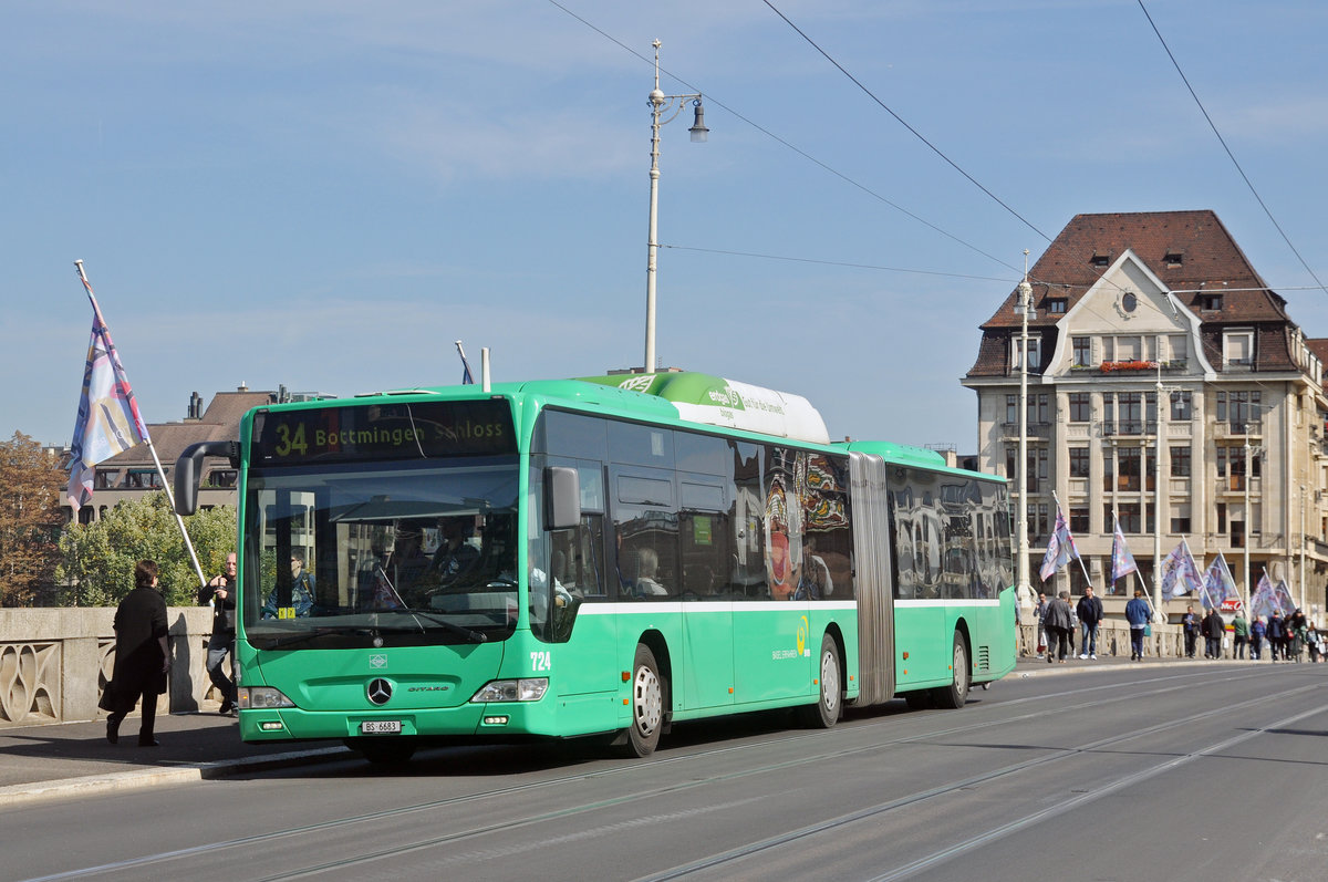 Mercedes Citaro 720, auf der Linie 34, bedient die Haltestelle beim Kronenplatz in Binningen. Die Aufnahme stammt vom 17.09.2017.