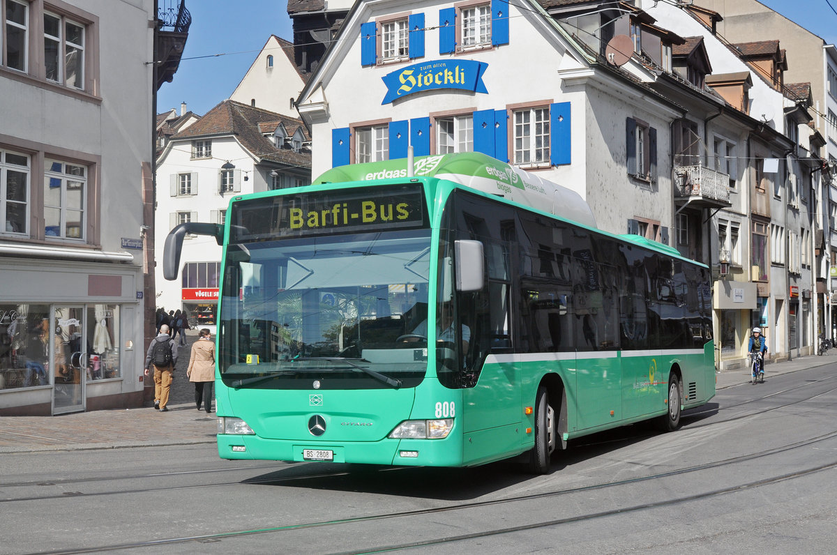 Mercedes Citaro 808, auf der wohl kürzesten Buslinie der Schweiz. Der Barfi Bus fährt während der Bauphase am Steinenberg vom Barfüsserplatz zur Schifflände. Die Aufnahme stammt vom 22.09.2017.