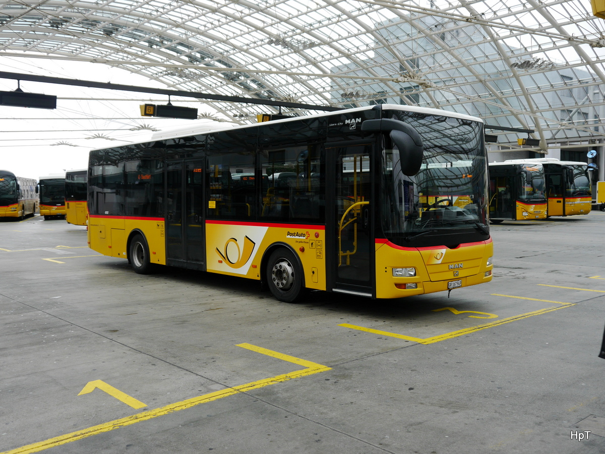 Postauto/PU Buchli GR 2053 (MAN/Beulas Spica 14.290HOCL) am 13.9.2017 beim Bhf. Versam-Safien