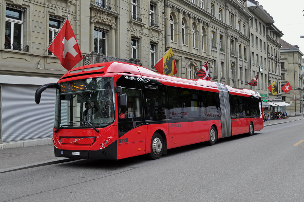 Volvo Hybrid Bus 875, auf der Linie 19, bedient die Haltestelle beim Bubenbergplatz. Die Aufnahme stammt vom 09.06.2017.