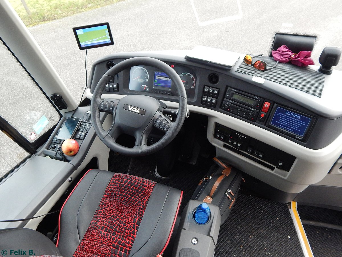 Der Fahrerarbeitsplatz des VDL Futura von JobTours aus Deutschland vor dem Kap Arkona am 29.12.2016