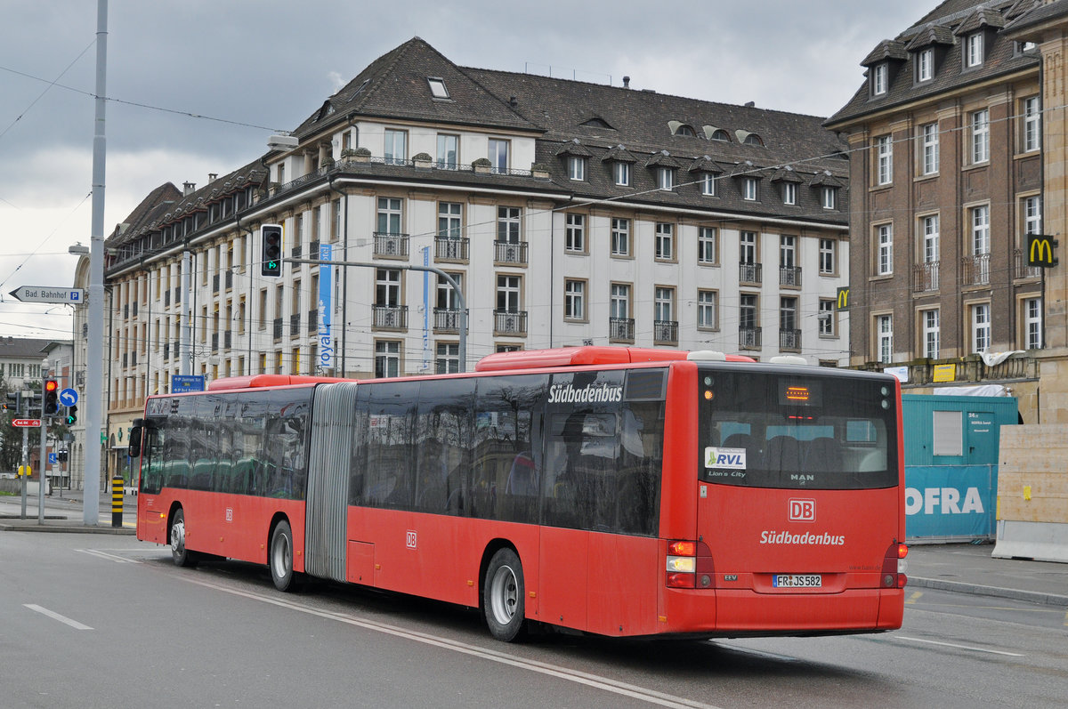 MAN Lions City von Südbadenbus,fährt als Eisenbahnersatz zum Badischen Bahnhof. Die Aufnahme stammt vom 01.04.2018.