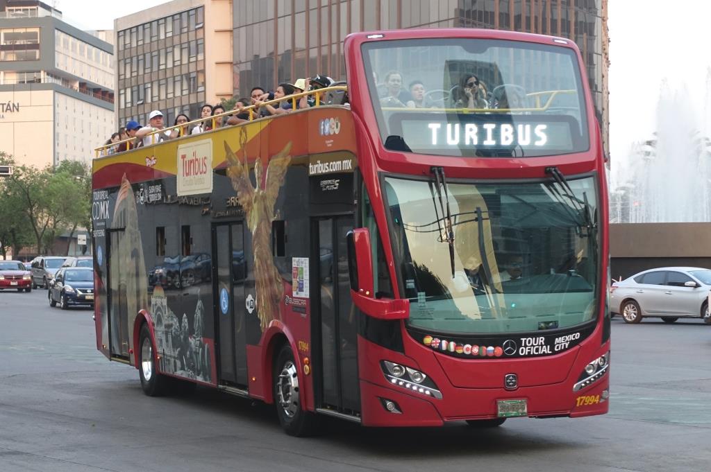 Der MB C2 171 Werbebus der STI am 26.4.18 hinter dem Bhf Thun am warten bis er zur Abfahrtkante fahren kann.