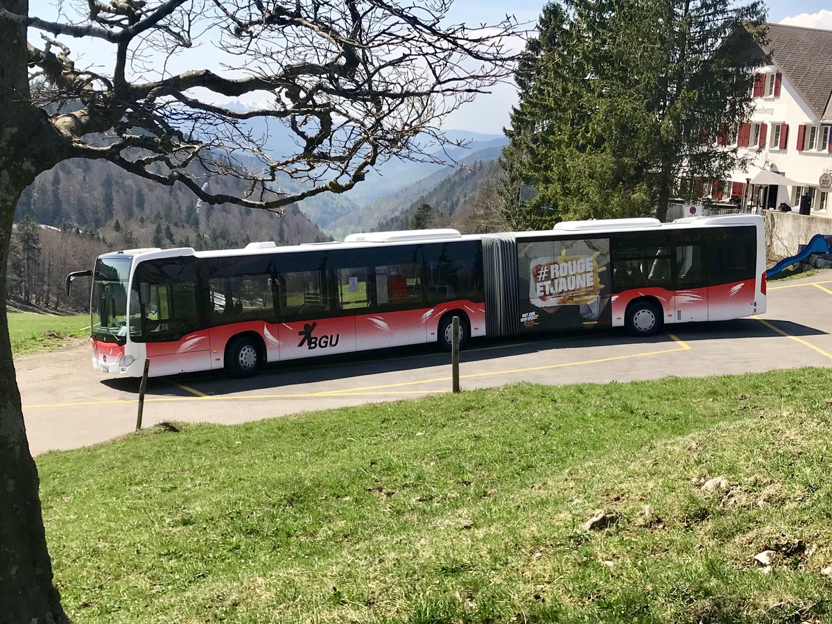Der BGU Gelenkbus Mercedes C2 Nr. 8 am 21.4.18 beim Unteren Grenchenberg.