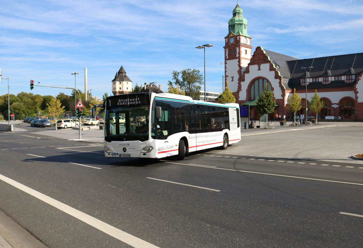 Ein Mercedes Benz O530G der neusten Generation von der SWK ( Stadtwerke Krefeld ) mit der Wagennummer 5638 am Krefelder Hauptbahnhof Süd. | August 2018