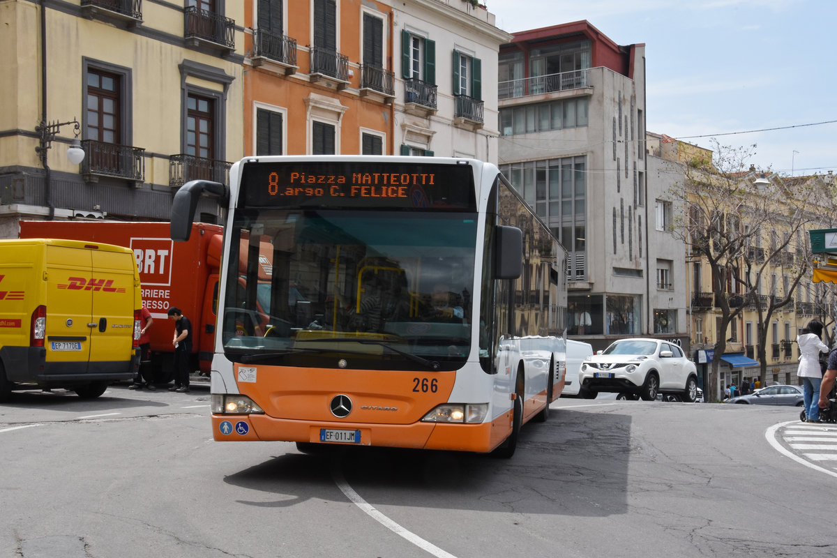 Mercedes Citaro 266, auf der Linie 8, unterwegs in Cagliari. Die Aufnahme stammt vom 08.05.2018.