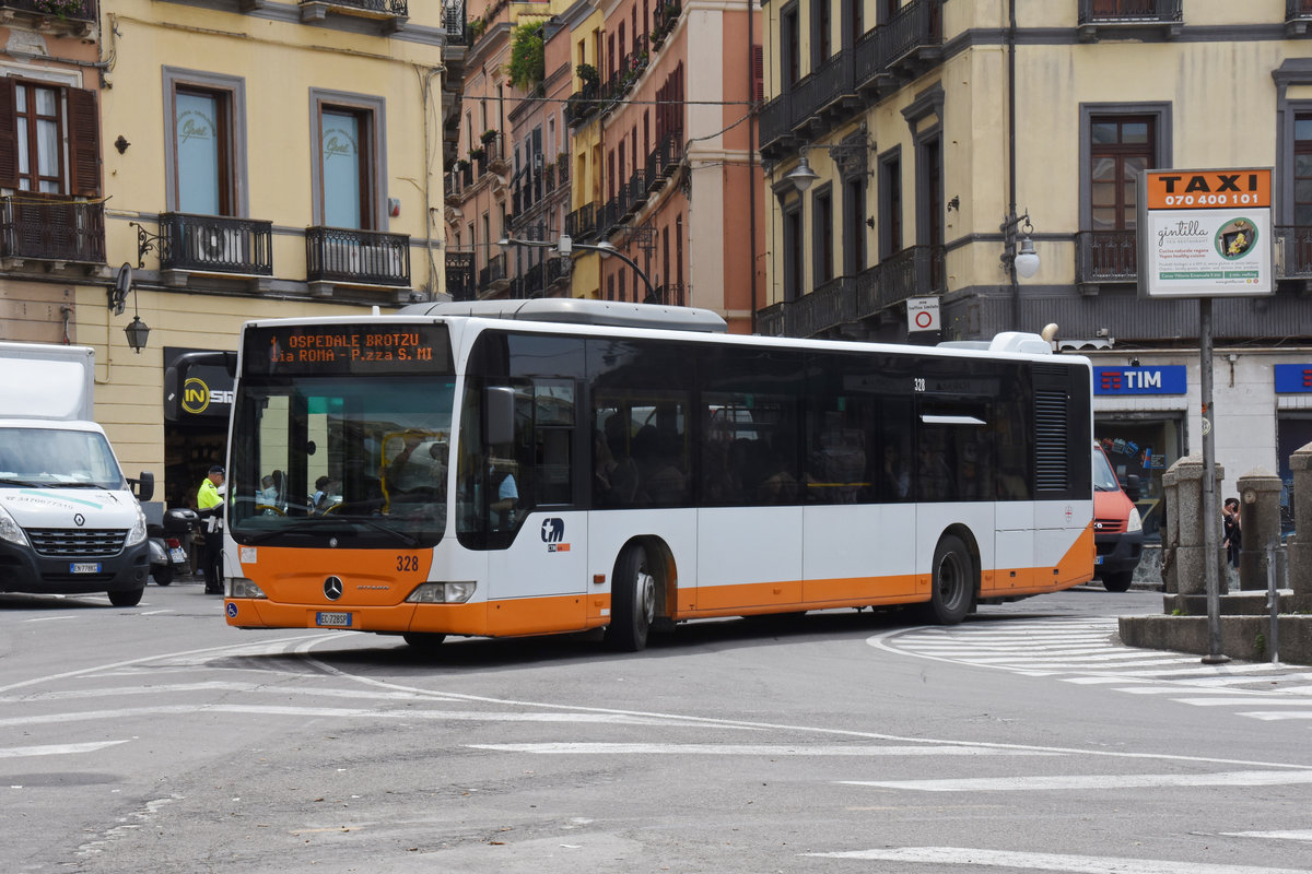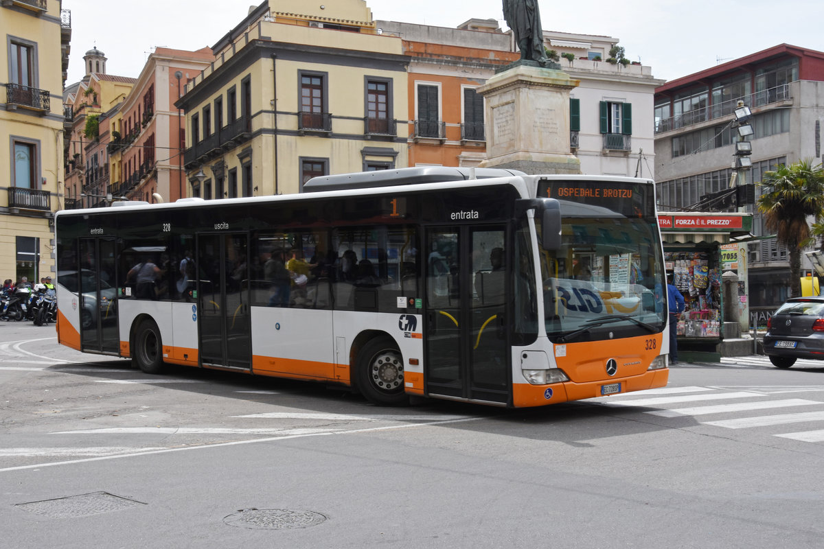 Mercedes Citaro 328, auf der Linie 1, unterwegs in Cagliari. Die Aufnahme stammt vom 08.05.2018.
