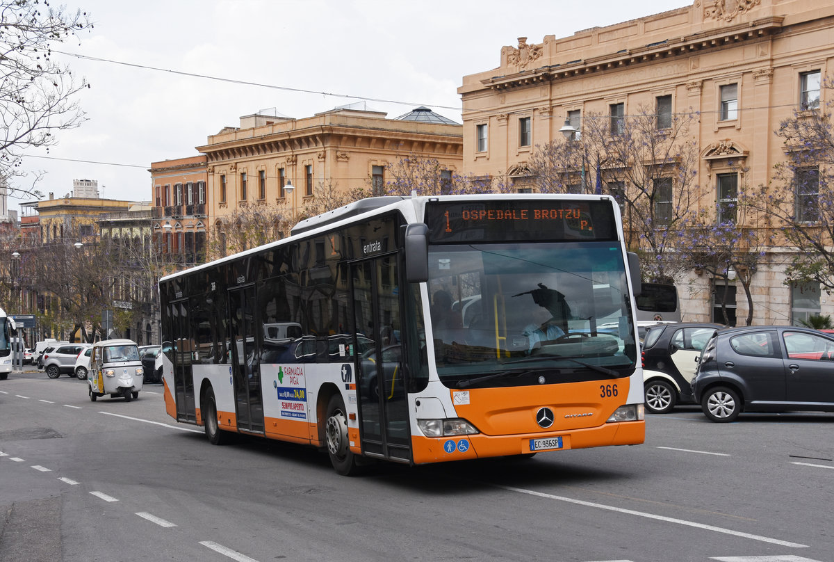 Mercedes Citaro 366, auf der Linie 1, unterwegs in Cagliari. Die Aufnahme stammt vom 08.05.2018.