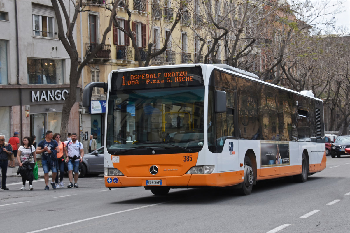 Mercedes Citaro 385, auf der Linie 1, unterwegs in Cagliari. Die Aufnahme stammt vom 08.05.2018.