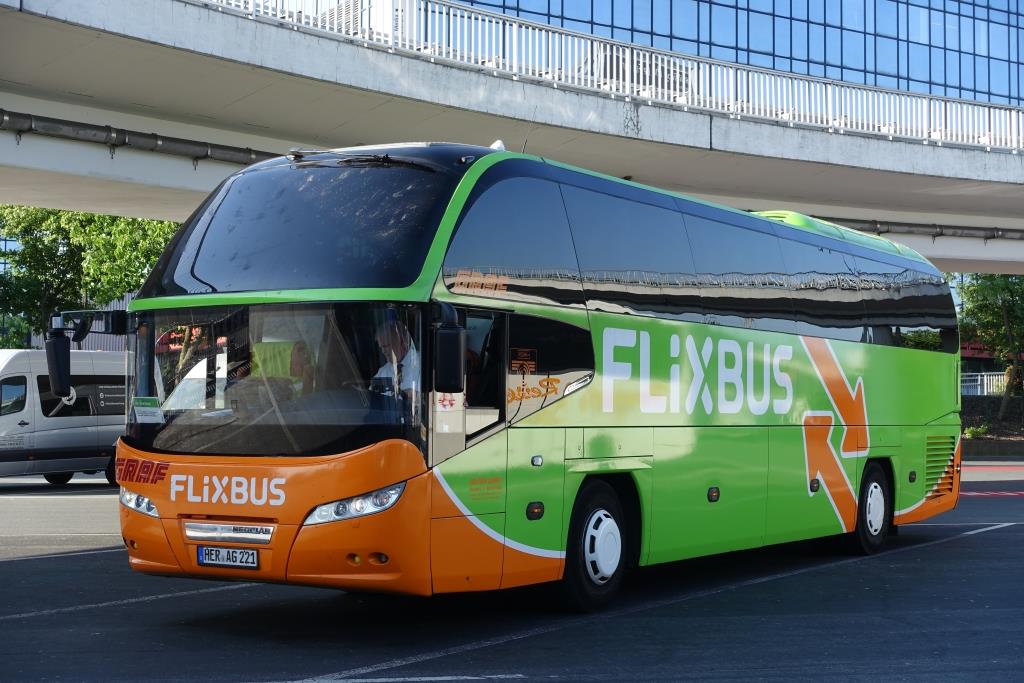 Neoplan Tourliner von ''Flixbus /Schröder'' am Berliner -ZOB im Mai 2018.