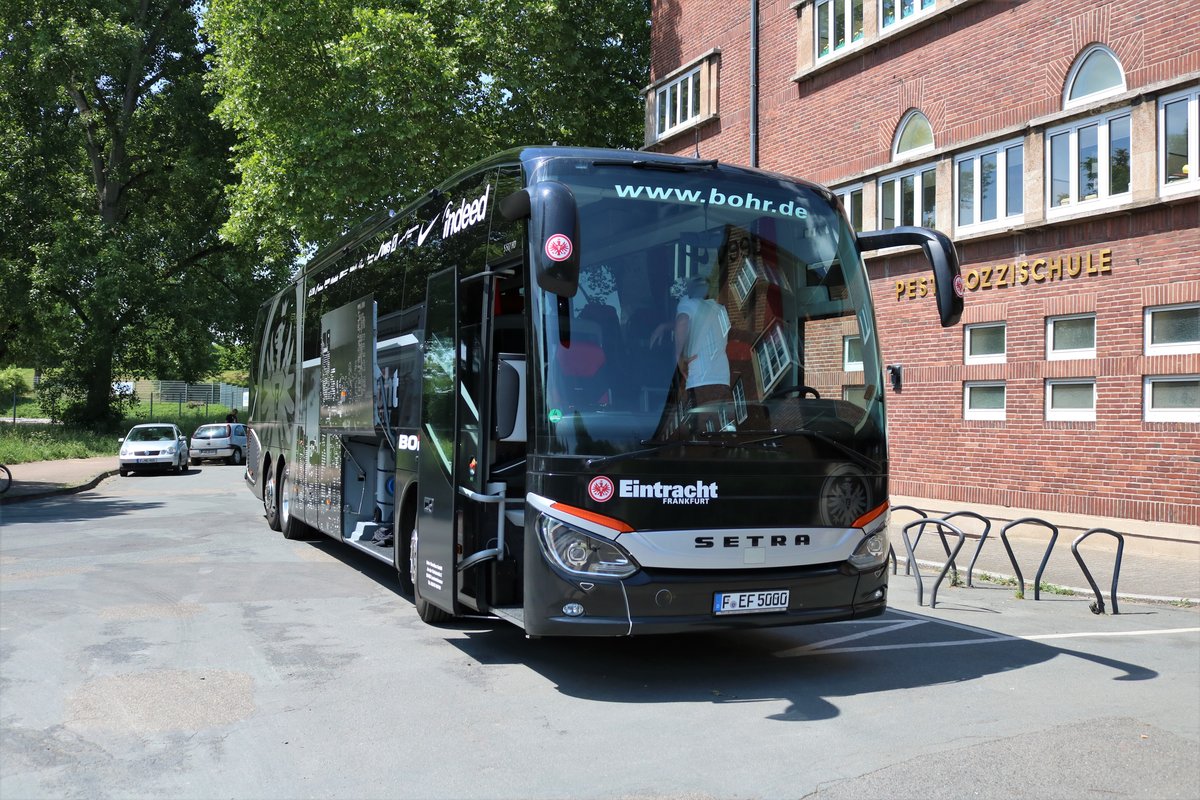 Bohr Reisen Setra 5000er der für Eintracht Frankfurt fährt am 26.05.18 in Riederwald. Auch die Profis Fahren mit diesem Bus