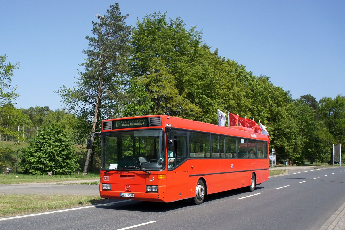 Bus Kaiserslautern / Verkehrsverbund Rhein-Neckar: Mercedes-Benz O 407 (KL-GV 170) vom Omnibusbetrieb Vicari GmbH, aufgenommen im Mai 2018 im Stadtgebiet von Kaiserslautern.