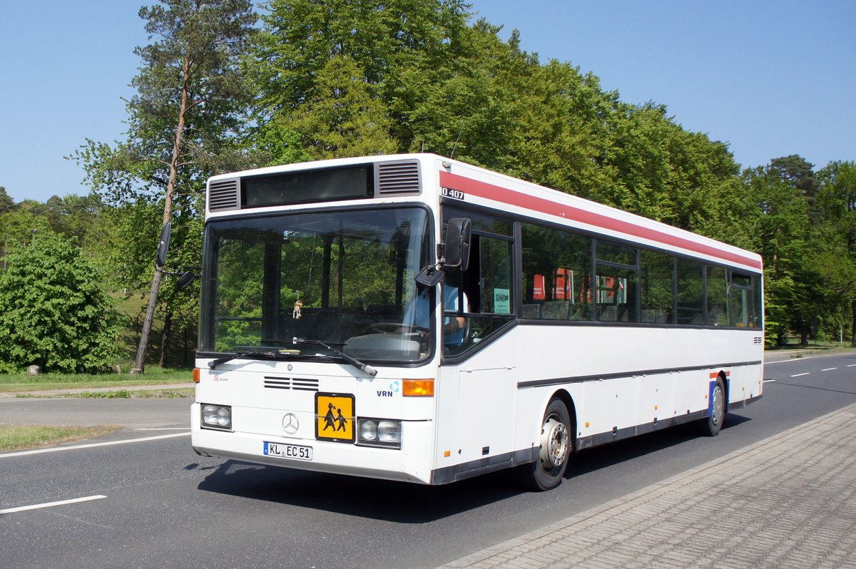 Bus Kaiserslautern / Verkehrsverbund Rhein-Neckar: Mercedes-Benz O 407 (KL-EC 48) von Schary-Reisen GbR, aufgenommen im Mai 2018 im Stadtgebiet von Kaiserslautern.