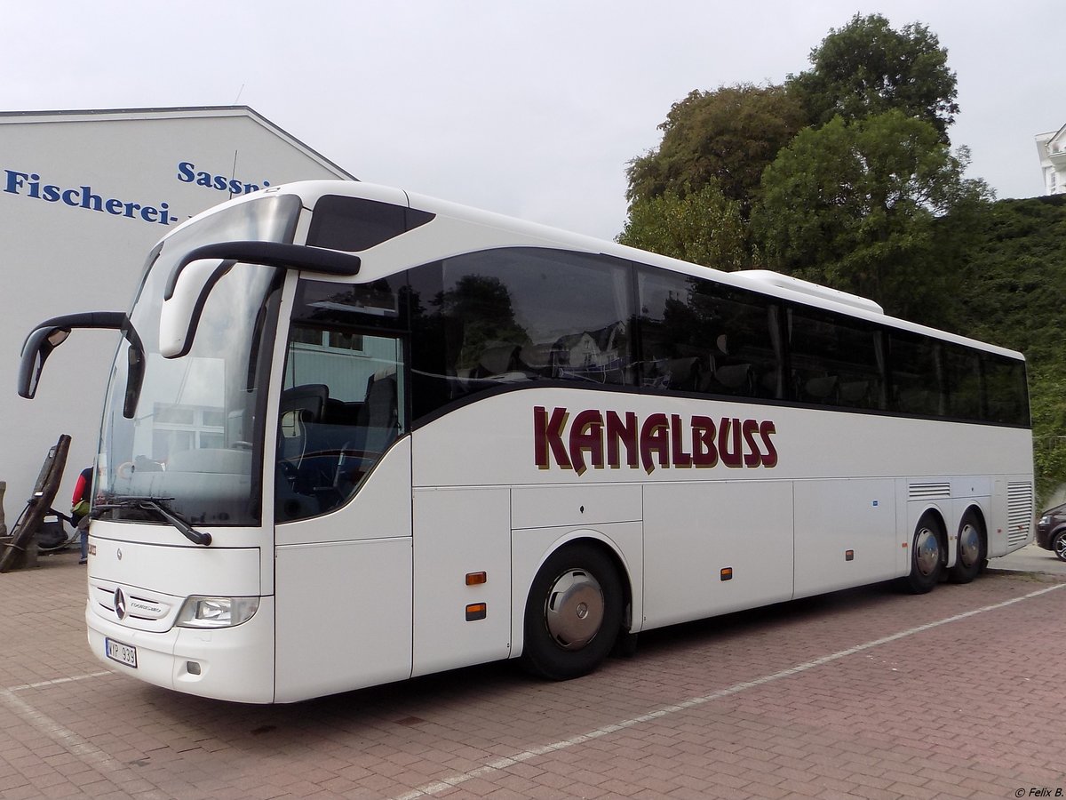 Mercedes Tourismo von Kanalbuss aus Schweden im Stadthafen Sassnitz am 30.08.2014