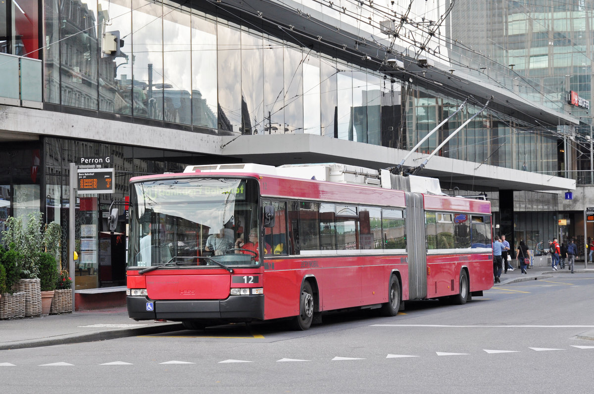 NAW Hess Trolleybus Nr. 12, auf der Linie 20, wartet an der Haltestelle beim Bahnhof Bern. Die Aufnahme stammt vom 22.05.2018.