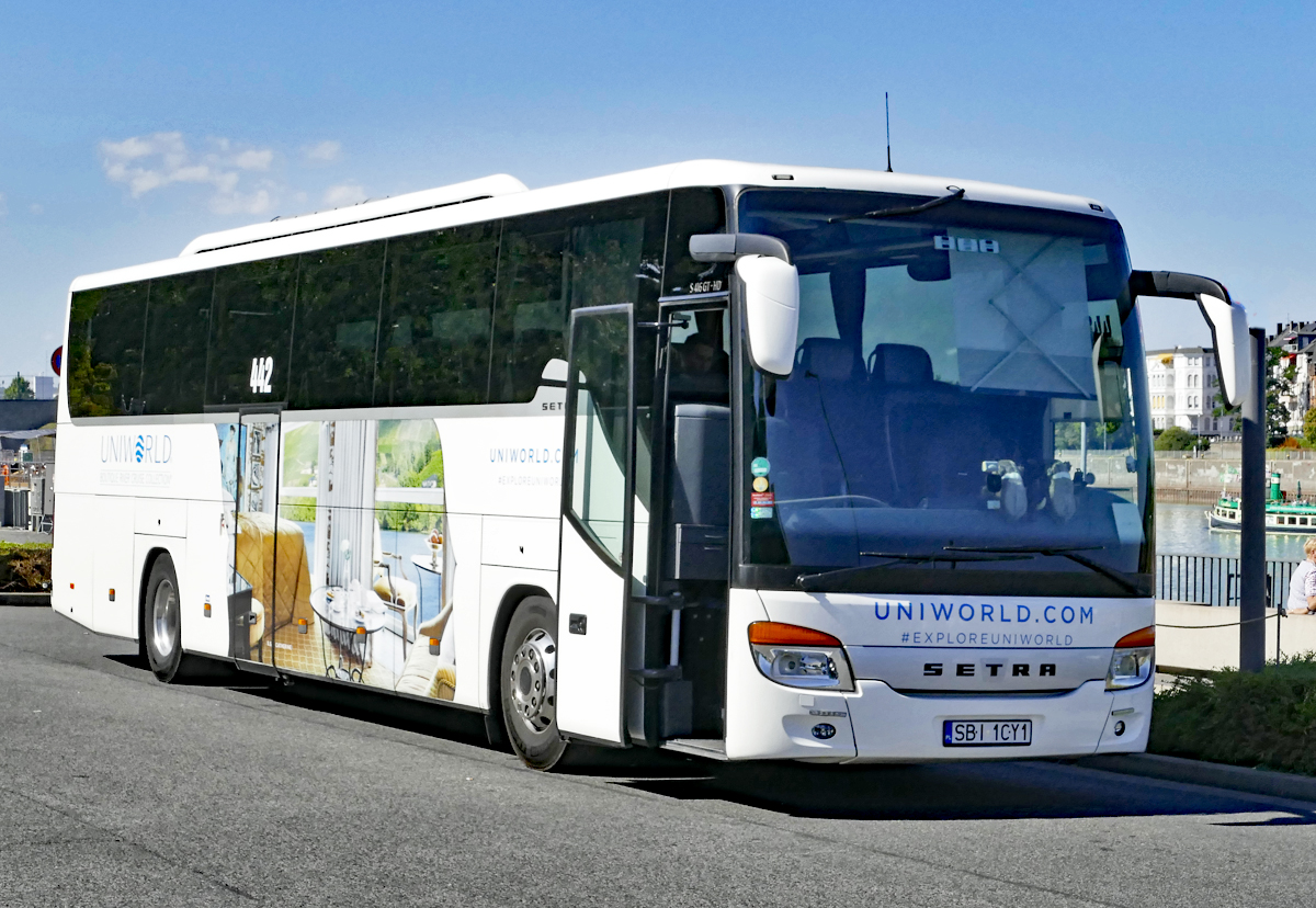 Setra S 416 GT/HD "Uniworld" am Moselufer in Koblenz - 12.09.2018