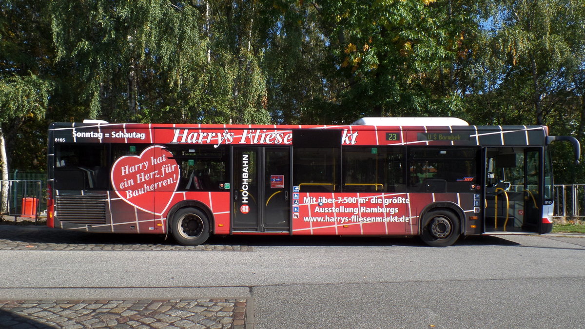 HHA 8165 (HH) am 5.10.2018, Endstation U-Bahn Billstedt, Linie 23, EZ 01.2007 als Jasper 8165, 01.2018 an HHA 8165, EvoBus, MB O 530 „Facelift /