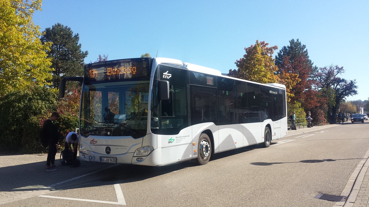 Hier ist der KA AV 9630 der AVG auf der Buslinie 134 nach Eichelberg unterwegs. Gesichtet am 05.10.2018 am Schulzentrum in Östringen.