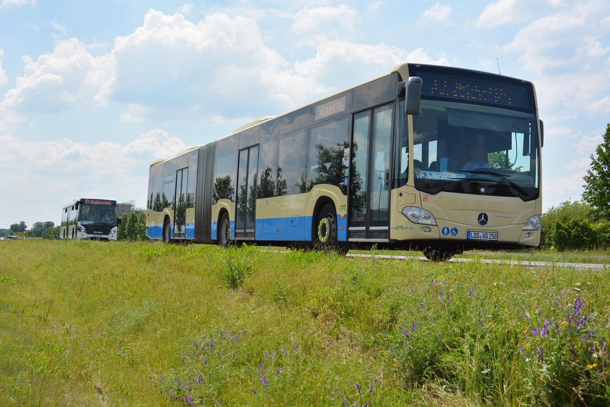 Am 04.06.2016 fährt LDS-VG 258 für die ILA 2016 Shuttle auf der Shuttle Linie "P3". Aufgenommen wurde ein Mercedes Benz Citaro G II der RVS.