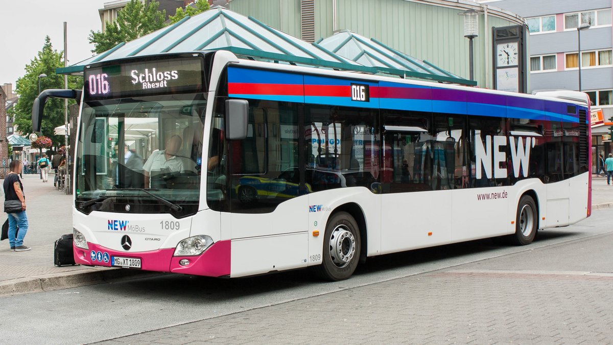 Das Neueste vom Neuen besitzt nun auch die NEW' Möbus. Dieser MB O530 der neusten Generation mit der Wagennummer 1809 konnte am Marienplatz in Mönchengladbach Rheydt aufgenommen werden. | August 2018