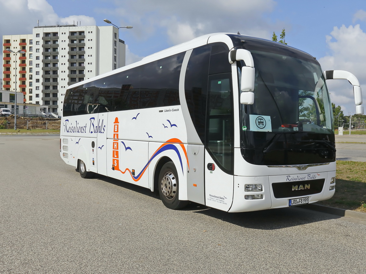 Der MAN Reisebus des Reisedienst Bahl aus Elmenhorst am 31. August 2018 am Hauptbahhof von Rostock.