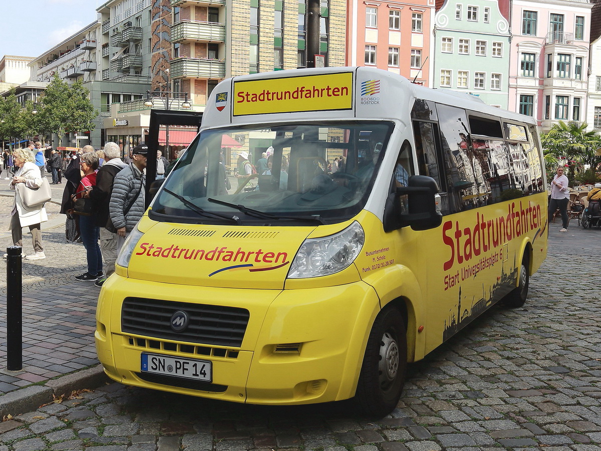 Ein weiterer Stadtrundfahrten Kleinbus (Fiat Ducato) in Rostock am 28.08.2018 nahe der Universität von Rostok.
