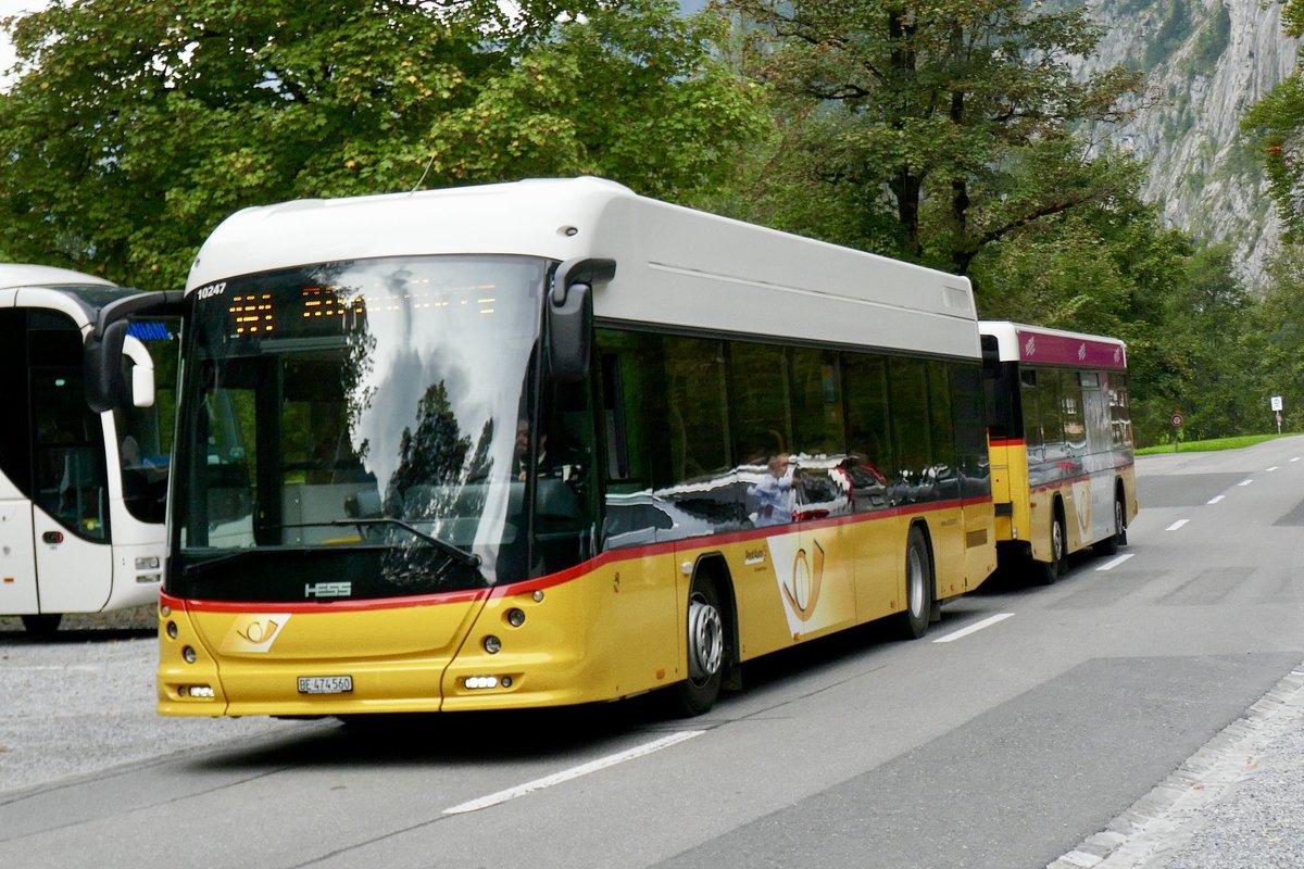 HESS Buszug nach Lauterbrunnen am 16.9.18 beim Überfahren einer Bodenschwelle vor der Haltestelle Trümmelbachfälle.